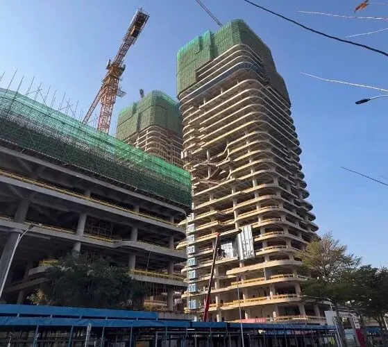 京东集团深圳总部项目以“画境之城”为设计语言,通过山水意境、开放空间与绿色技术的融合,构建起未来办公生态。2022年初项目启动全球设计竞标,奥雷·舍人事务所方案从七家顶尖机构中脱颖而出。2023年12月15日项目正式奠基动工,由上海宝冶承建,进入实质性建设阶段。2025年5月主体结构初具雏形,A座超高层办公楼完成结构封顶,进入内部施工阶段。2026年4月项目B座塔楼施工至地上30层,预计2026年底封顶。预计2027年全面投用。