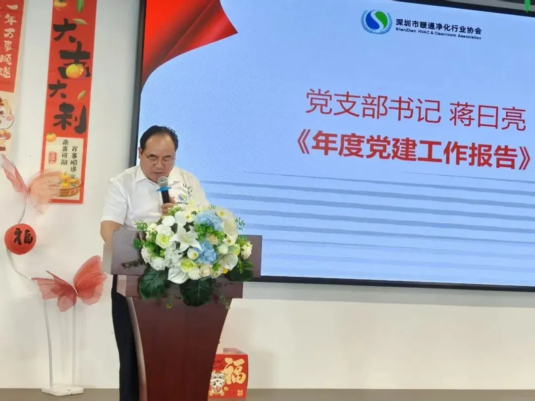 党支部书记蒋日亮作了《年度党建工作报告》,强调将持续加强党组织自身建设,促进党建与业务工作深度融合,以党建引领行业自律与健康发展,确保协会发展的正确方向。