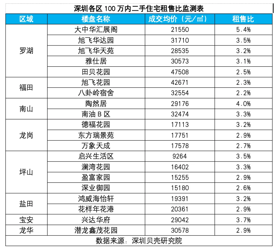 小编最新获悉,甚至是深圳总价100万以内的二手住宅,也正在成为市场追捧热点,凭借低门槛上车属性与远超全市平均水平的租售比优势,成为深圳新市民扎根城市、稳健型投资者配置资产的双重优选。
