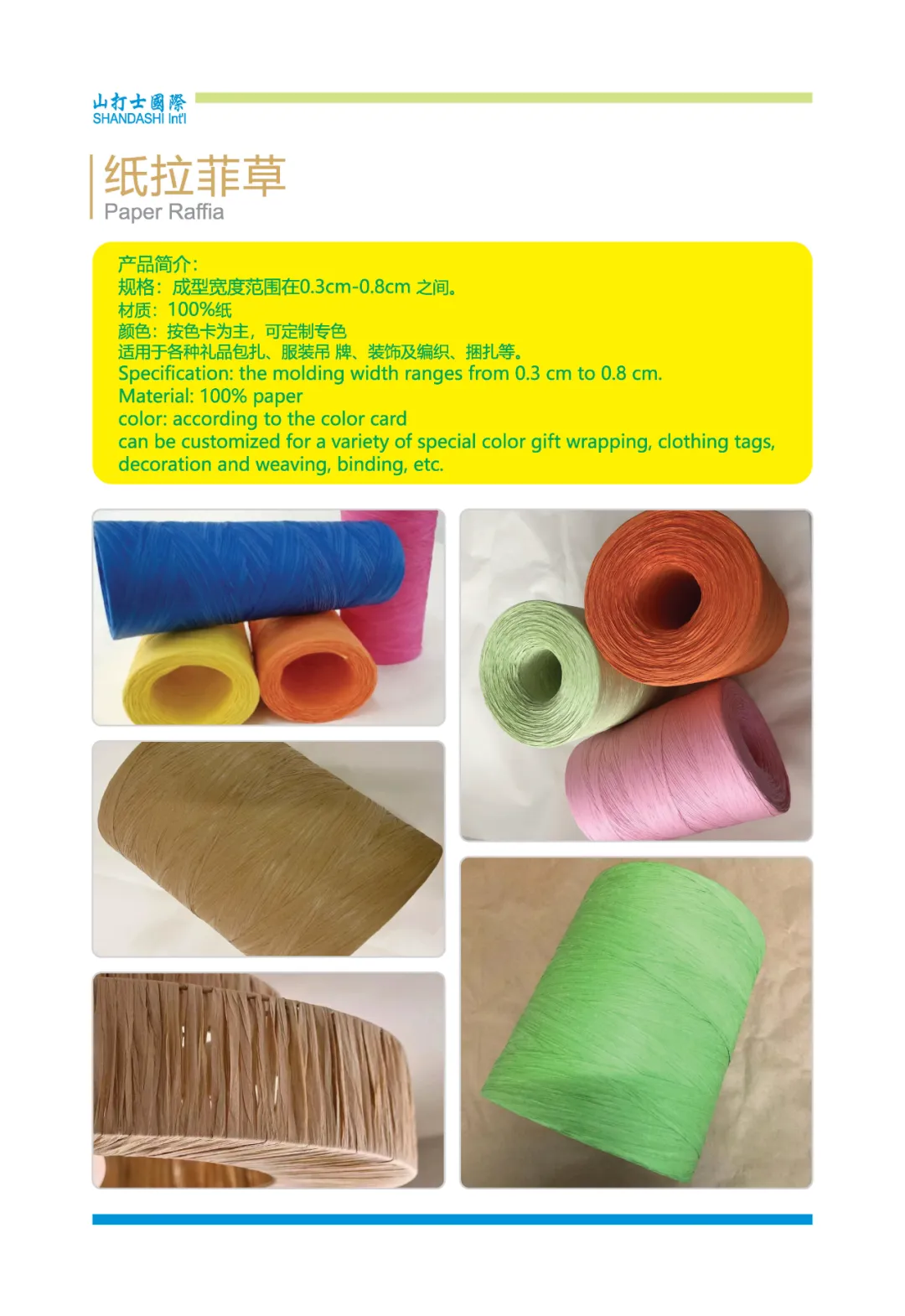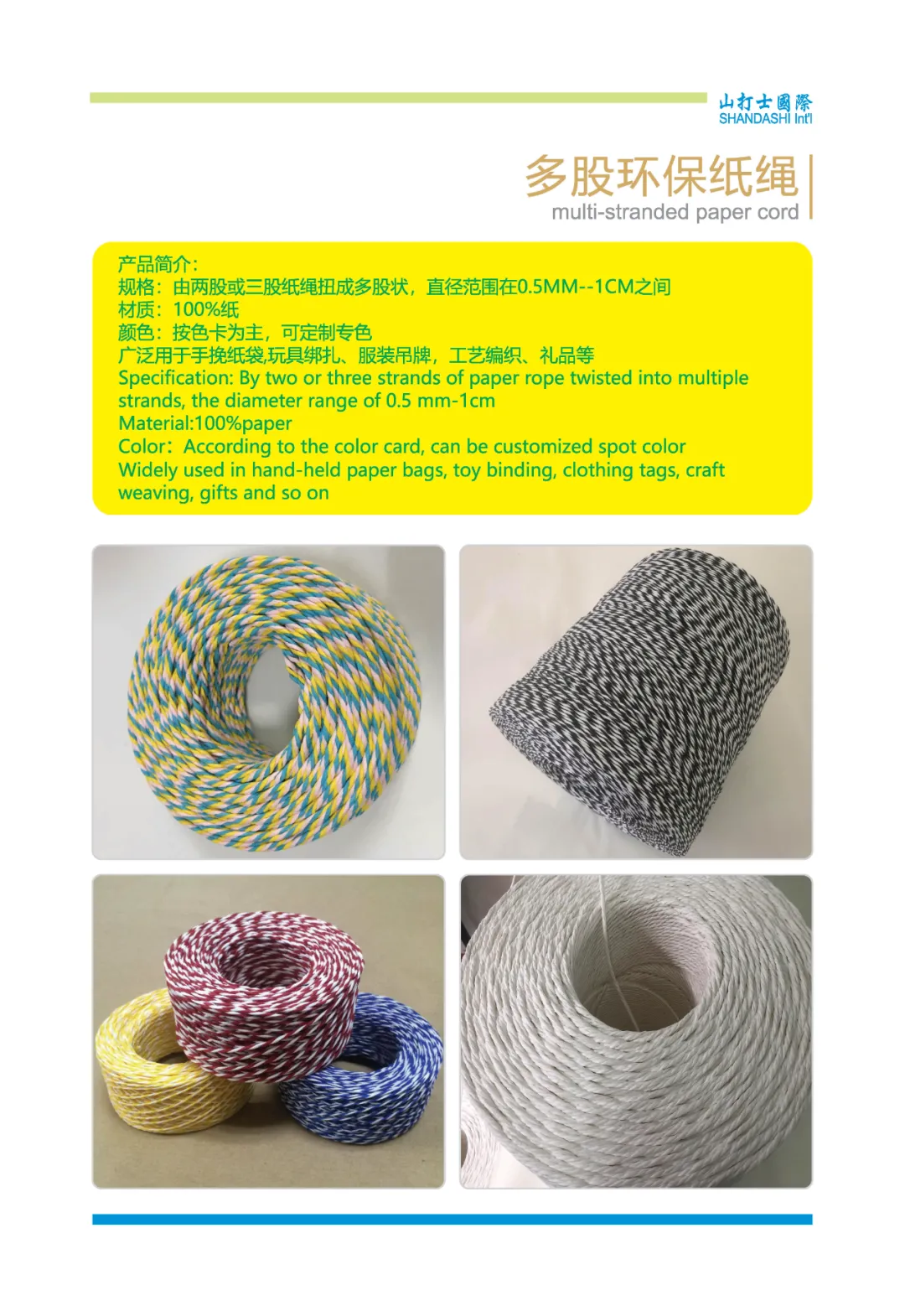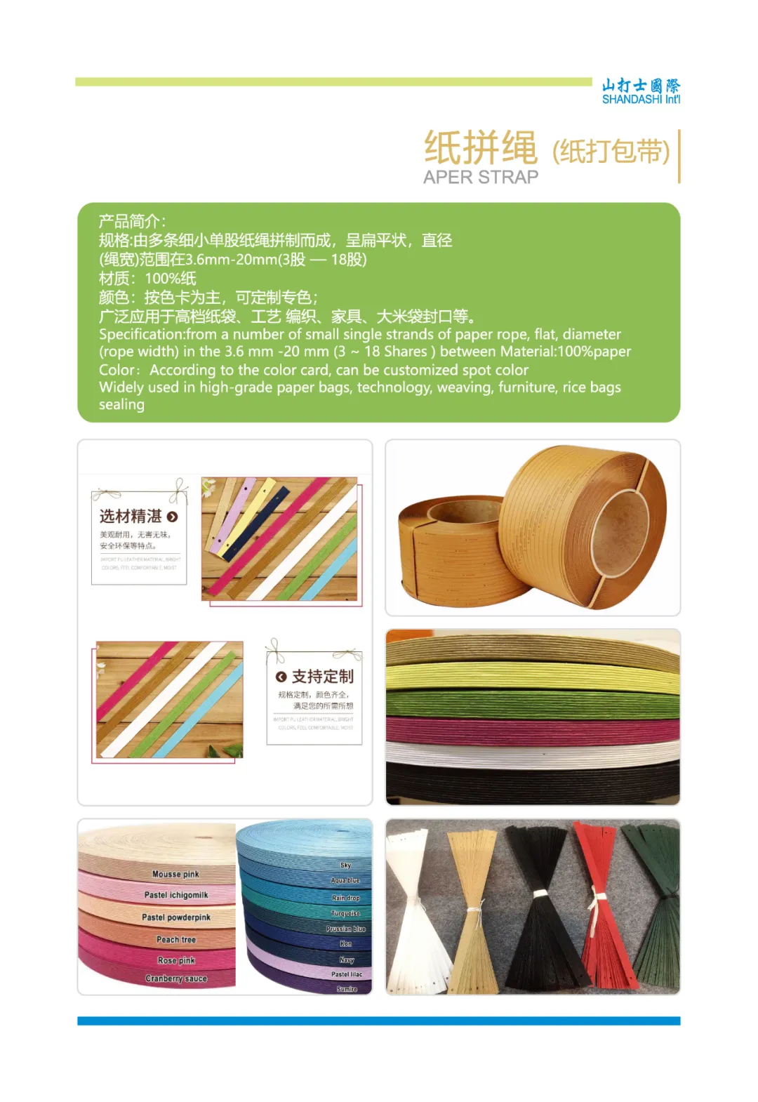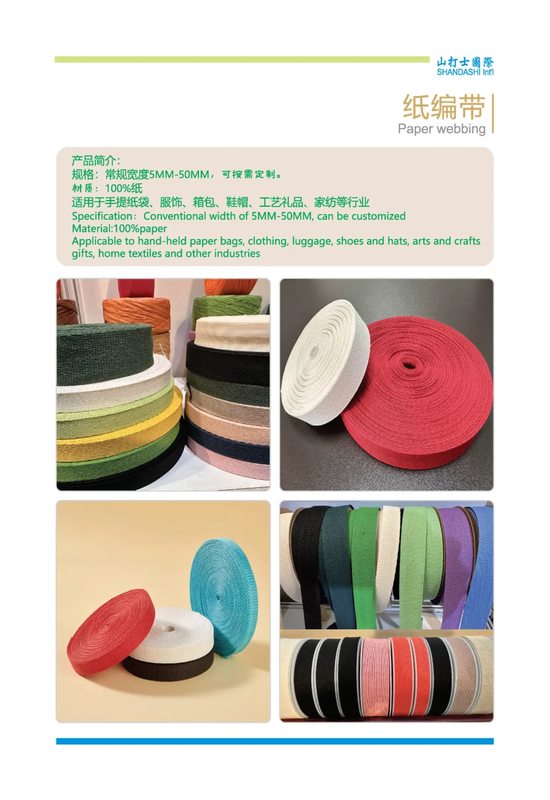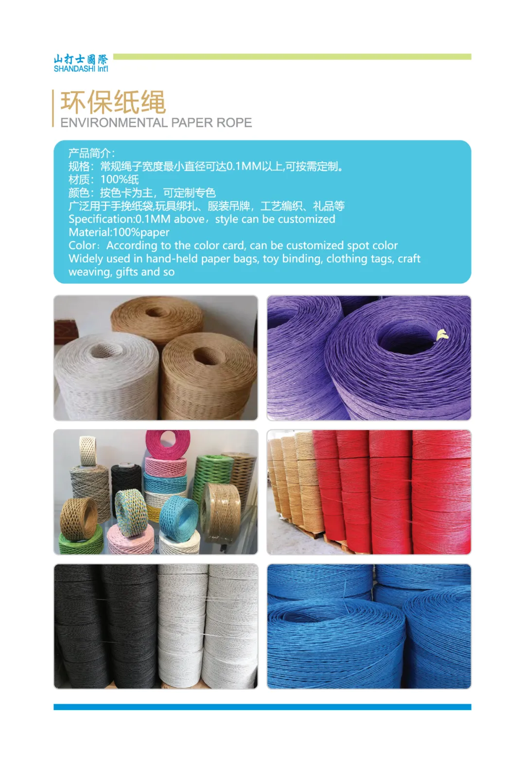 公司集研发、生产、销售及供应链服务于一体,专注于纸绳及纸制精品的创新制造:纸纱、针通纸绳、纸提手、纸打包带、纸织带、纸扁带、换卷纸带、引纸带、纸编织绳、纸拉菲草、纸丝、拼排纸绳、纸绳手挽、纸扎绳、手挽袋纸绳、家具纸绳、工艺礼品纸绳、手挽机/全自动制袋机专用纸绳、纸袋手提绳、防水纸绳、小卷纸绳球、棉包纸绳等产品覆盖16大类、超1000种花色,年产能突破10亿米。支持定制化生产,产品通过FSC®森林认证(FSC®C004594)、欧盟REACH、ROHS、FDA环保标准,远销100+国家和地区。