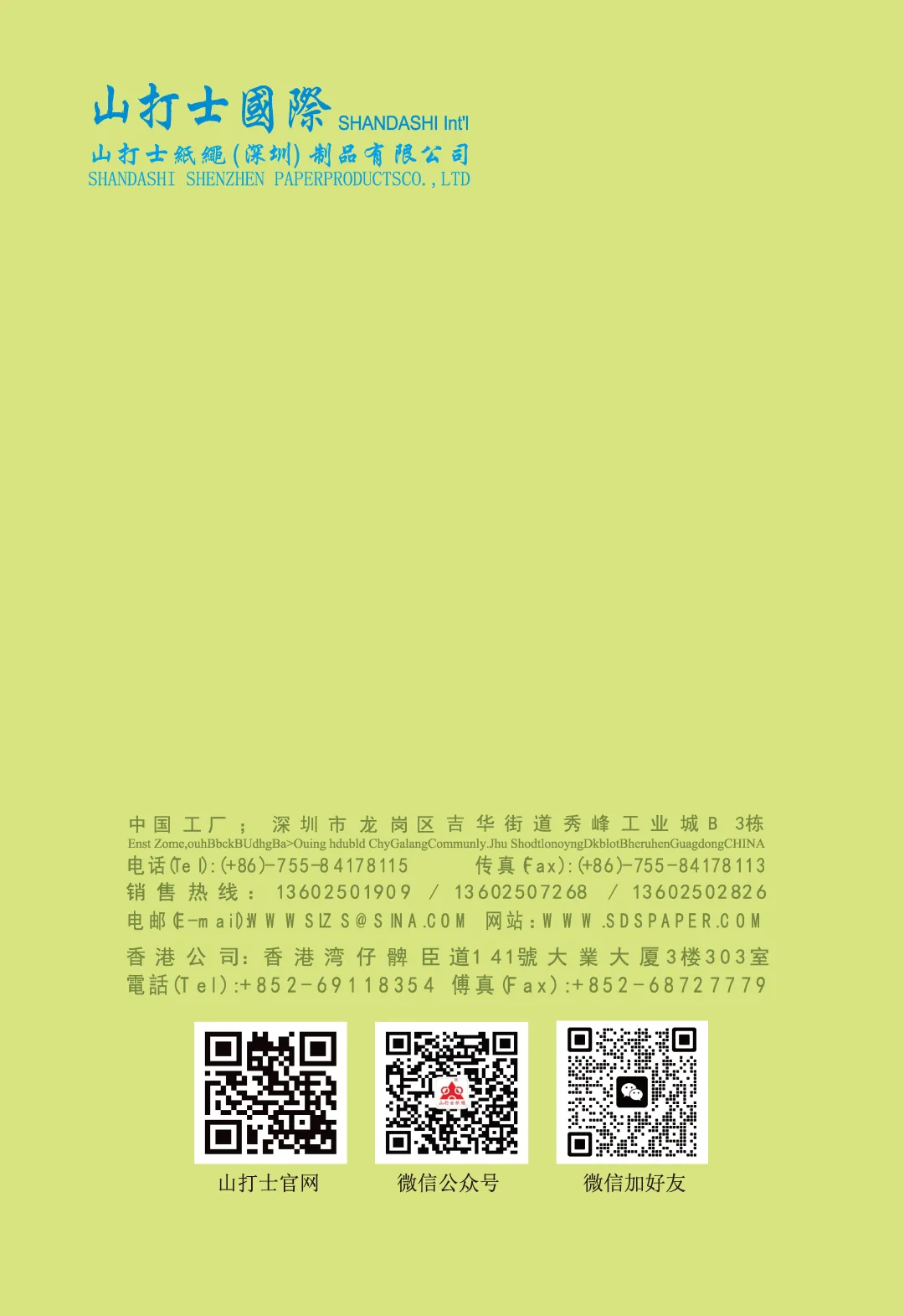 山打士纸绳成立于2004年,总部位于中国深圳是全球领先的环保纸质新材料解决方案提供商。拥有优良的开发团队,坚持以环保纸产品为主导。无纸境,绳世界。