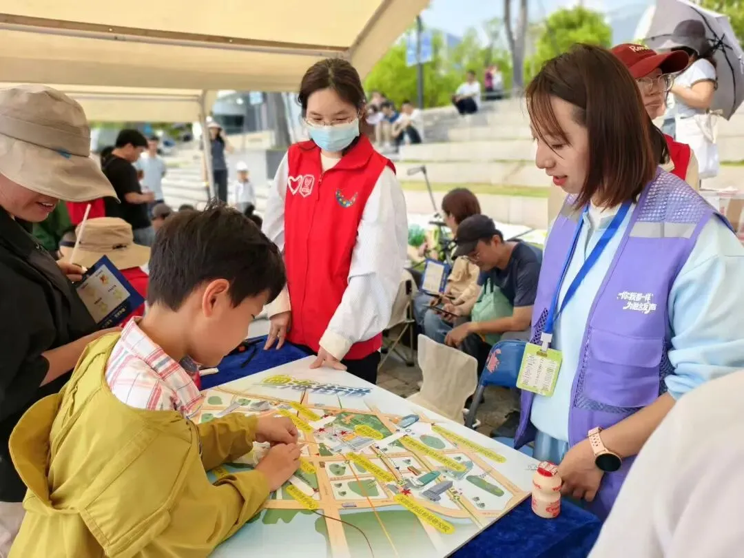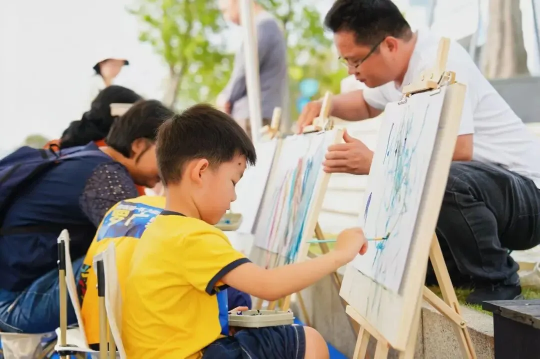 徒步结束后,趣味游园会正式开启,丰富多样的互动任务让孩子们在快乐中学会协作、懂得分享。他们在自然科普区合作完成小型生态系统环保科学手作,学习生态平衡知识;在饮品DIY区携手制作水果茶,体会劳动与分享的快乐;在城市拼图区合力拼合粤海街道地图,加深社区认同与归属感;在春日写生区用画笔描绘眼前春色,记录自然之美;在DIY书签区,80余岁退休老干部艺术家与2岁幼童同挥笔墨,创作书画书签,“一老一小”传承关爱与温暖……