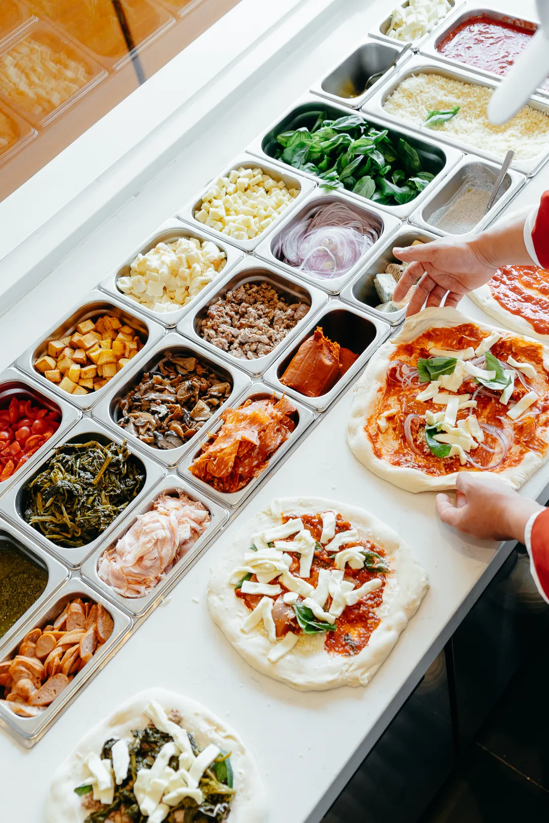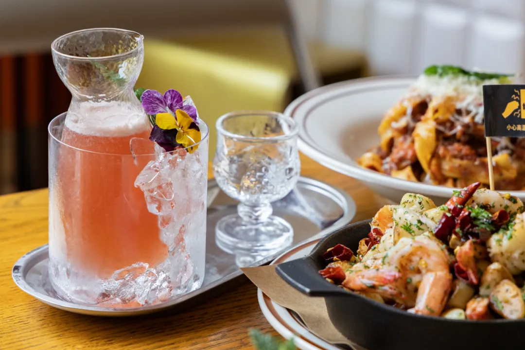 半开放式厨房看得见披萨现点现做,搭配意面、小食和酒饮,随手一拍都是氛围感大餐。