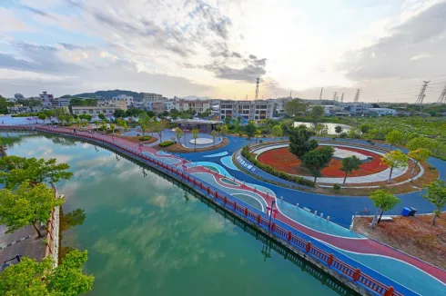 古厝社区锚定“美丽宜居、宜业兴村”目标,聚焦人居环境、基础设施、乡村风貌、产业转型四大核心领域发力。盘活闲置土地与边角荒地,建成4处口袋公园,精细化维护两英生态公园及大溪沿岸绿化带,累计种植树木超万株,实现“推窗见绿、出门入园”。针对水环境短板,对下辽池、大沟等水体开展清淤清障专项行动,翻新安全围栏,重现“水清、岸绿、景美”的生态景观。作为两英镇针织服装产业的核心承载地,以“工改工”为突破口,加速推进龙岭老厂房改造,8栋定制厂房拔地而起,通用厂房及配套工程同步推进,推动传统纺织印染产业向集约化、现代化转型。