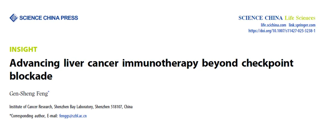 近日,SCIENCE CHINA Life Sciences(《中国科学:生命科学》英文版)在线发表深圳湾实验室肿瘤研究所冯根生研究员撰写的题为“Advancing liver cancer immunotherapy beyond checkpoint blockade”的Insight文章,总结了肝癌免疫治疗的现状与困境,并提出了一种不依赖免疫检查点抑制剂的肝靶向免疫治疗新策略。