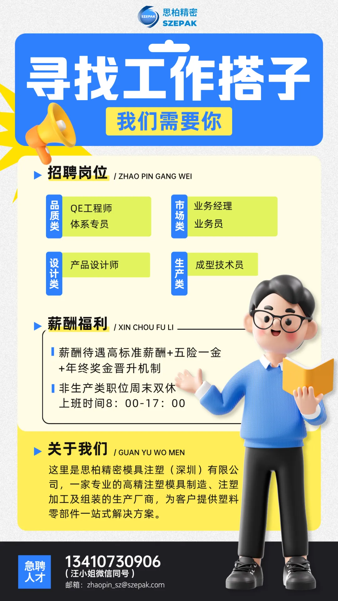 3) 能看懂简单的产品图纸,了解常用的工程塑料特性者优先。