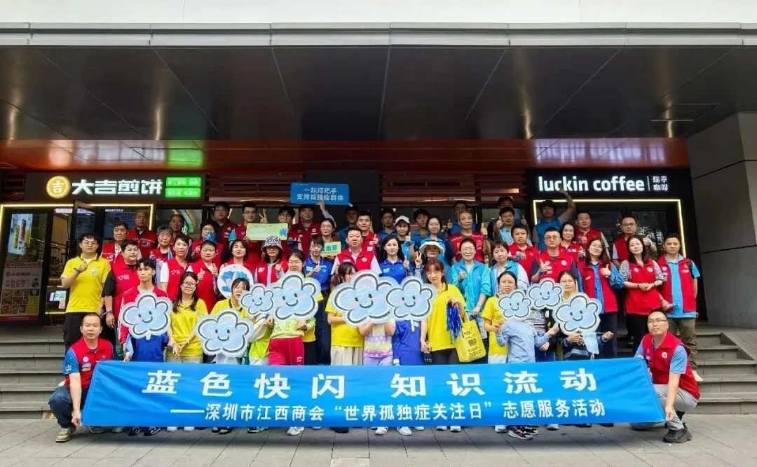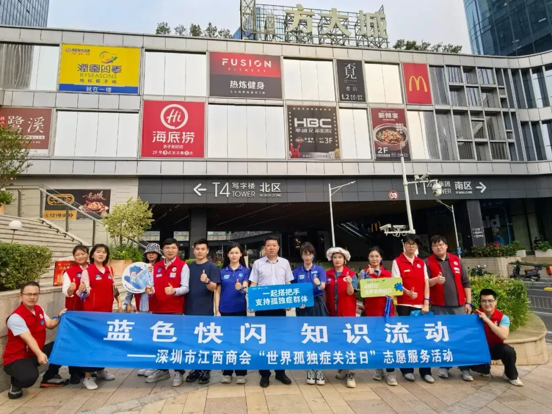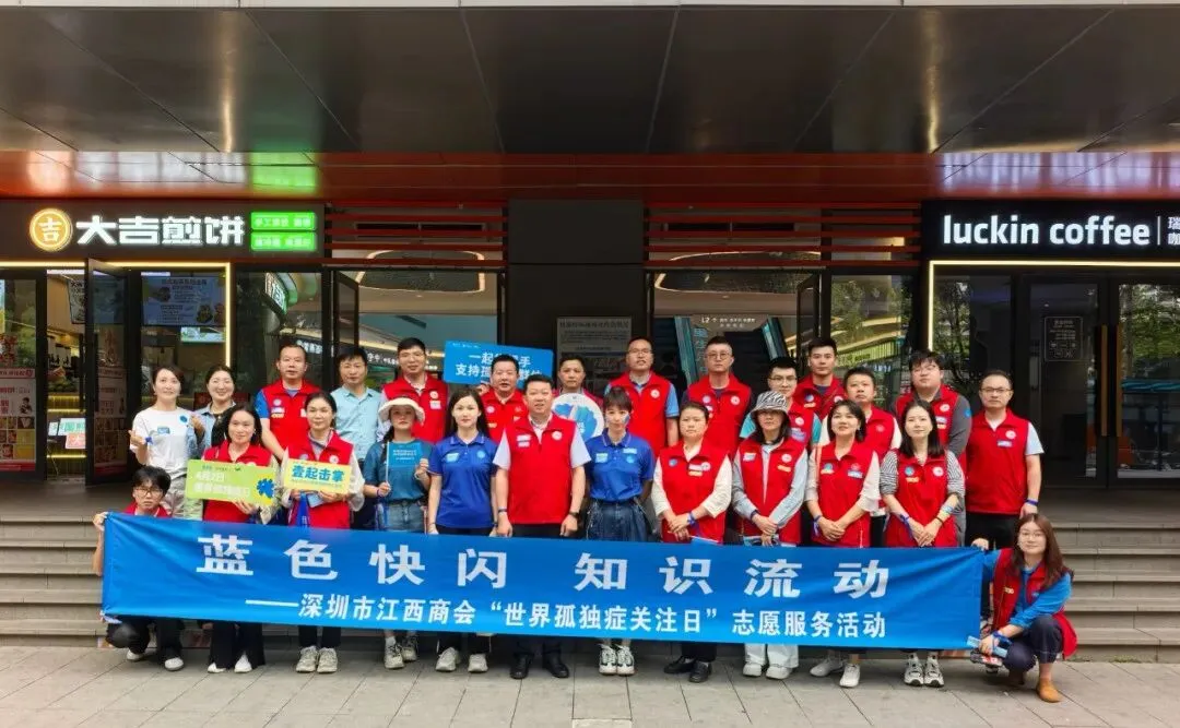为深入践行社会责任,普及孤独症科学知识,消除社会偏见与误解,营造包容友善、关爱互助的社会氛围,2026年4月2日,在第19个“世界孤独症关注日”当天,深圳市江西商会联合会员单位——金色年华特殊儿童干预中心,共同开展“蓝色快闪·知识流动”志愿服务活动,以实际行动传递赣商温情与担当。