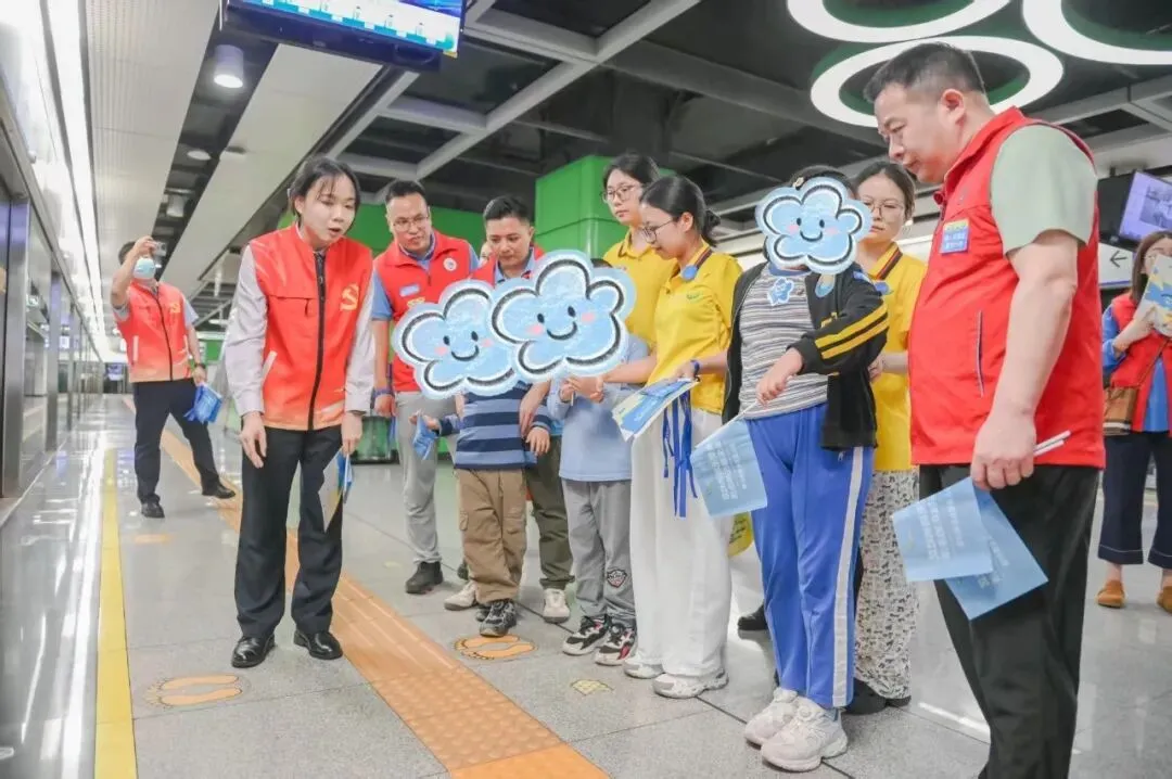 在桃源村地铁站,专业老师与志愿者带领孤独症儿童学习地铁购票、进站、候车、乘车等全流程出行规范,通过实地体验、分步教学的方式,帮助孩子们系统掌握安全出行知识与实操技能。商会志愿者全程细心陪护、耐心引导,悉心协助孩子们熟悉乘车流程、适应车厢环境,以贴心陪伴与暖心守护,为 “星星的孩子” 安全出行保驾护航。