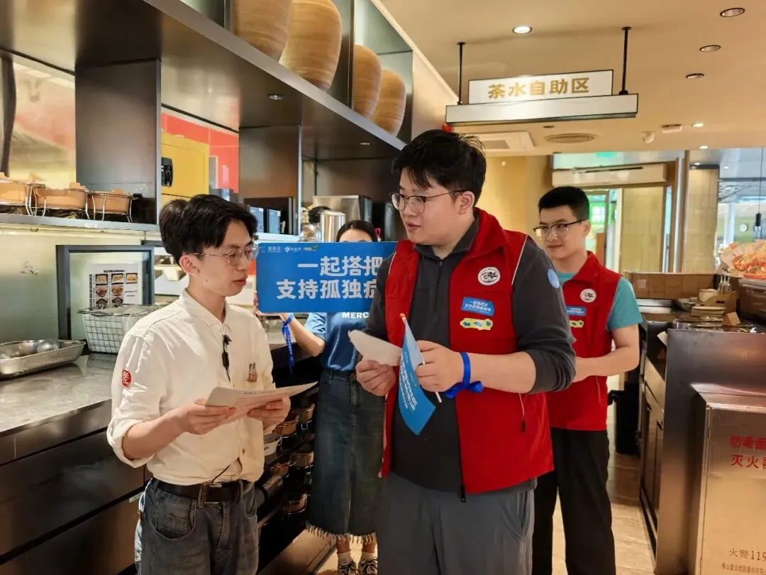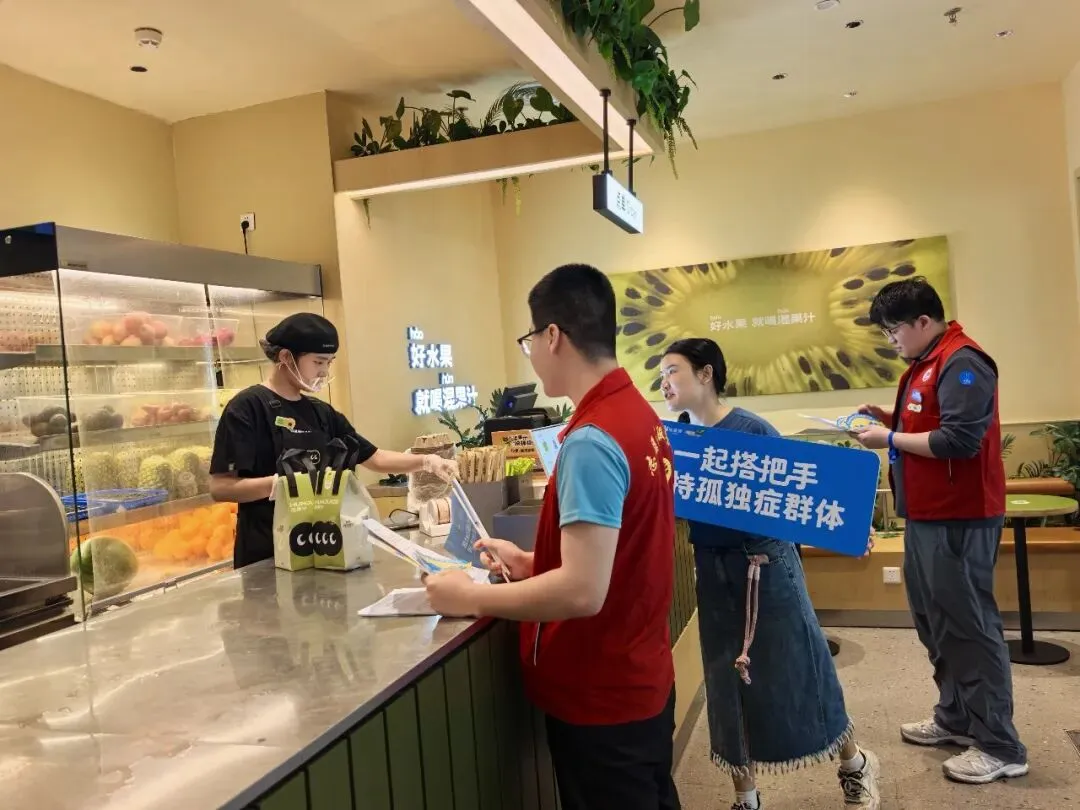 在方大城商圈及周边区域,商会志愿者以赤诚之心化身科普使者,有序开展孤独症关爱科普宣传系列活动。他们主动走向过往路人、商圈内商铺商家,逐一发放孤独症科普手册、宣传海报等资料,用通俗易懂的语言开展现场宣讲,细致普及孤独症相关常识,澄清认知误区,解读孤独症群体的真实需求,让专业科普内容更接地气、入脑入心。同时,志愿者积极与各商铺商家沟通对接,耐心倡导门店在醒目位置张贴“孤独症友好商家”标识,共同为孤独症群体营造包容友善、便捷舒心的消费环境,引导全社会科学认识、充分理解、真诚关爱孤独症群体,让爱心善意在城市各处传递蔓延。