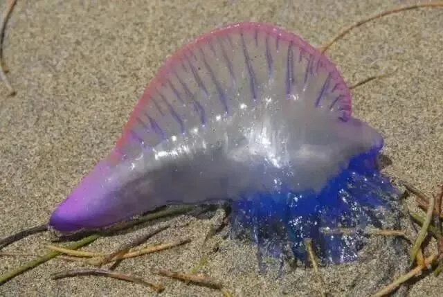 僧帽水母是一种剧毒水母,通常生活在远海,但有时会被强风和洋流带到海岸附近水域。