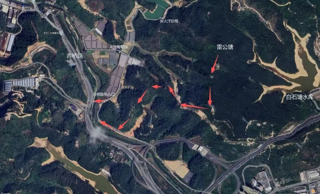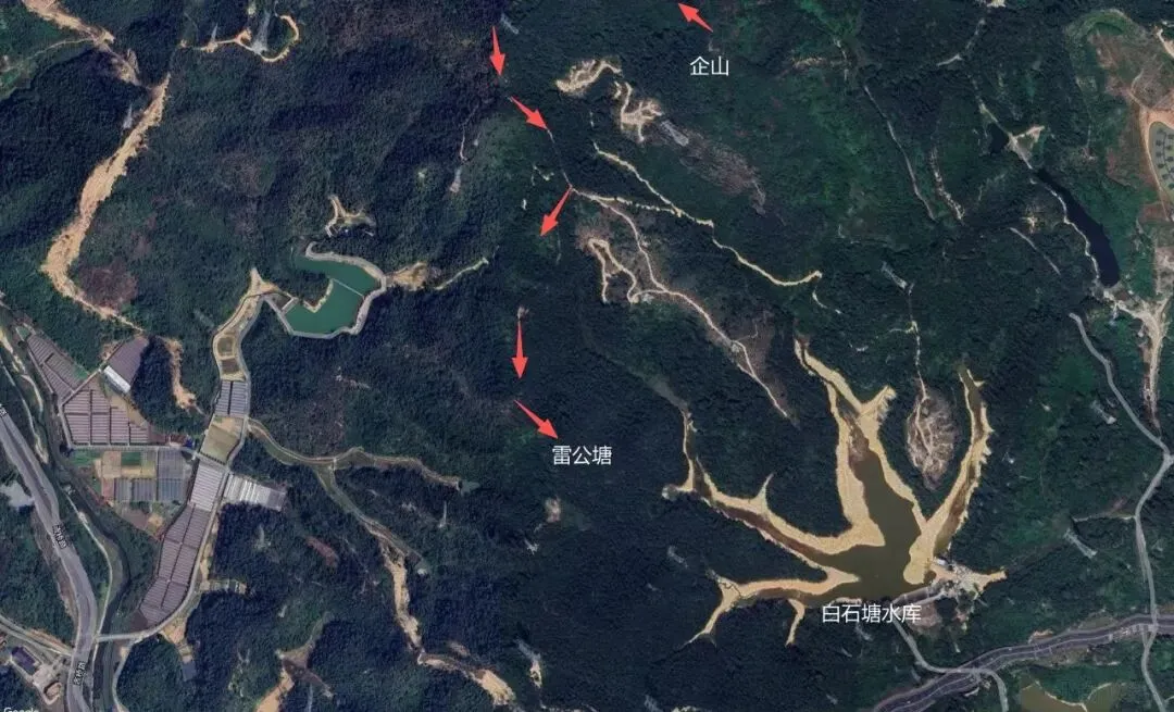 它其实是企山和黄竹嶂之间的山脊垭口之一。在客家方言区,“雷公”常指代山间的雷击区域或雷雨频发地——古人认为雷电多的地方有“雷神”镇守,于是用“雷公”命名山塘、山坳。