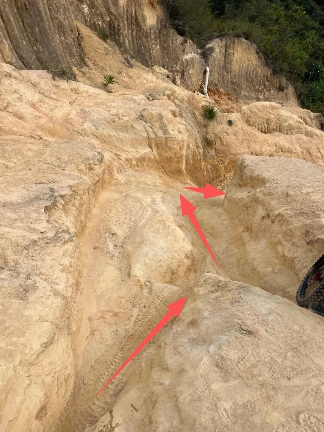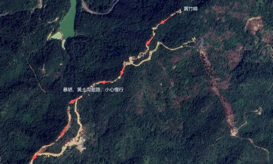 不过现在让人记住黄竹嶂的,不是竹子,而是路——山脊被越野摩托压得坑坑洼洼,布满深车辙和冲沟,路面像被犁过一样。对徒步者是“坎坎坷坷”,但对骑手却是“炫技耍酷”的乐园。
