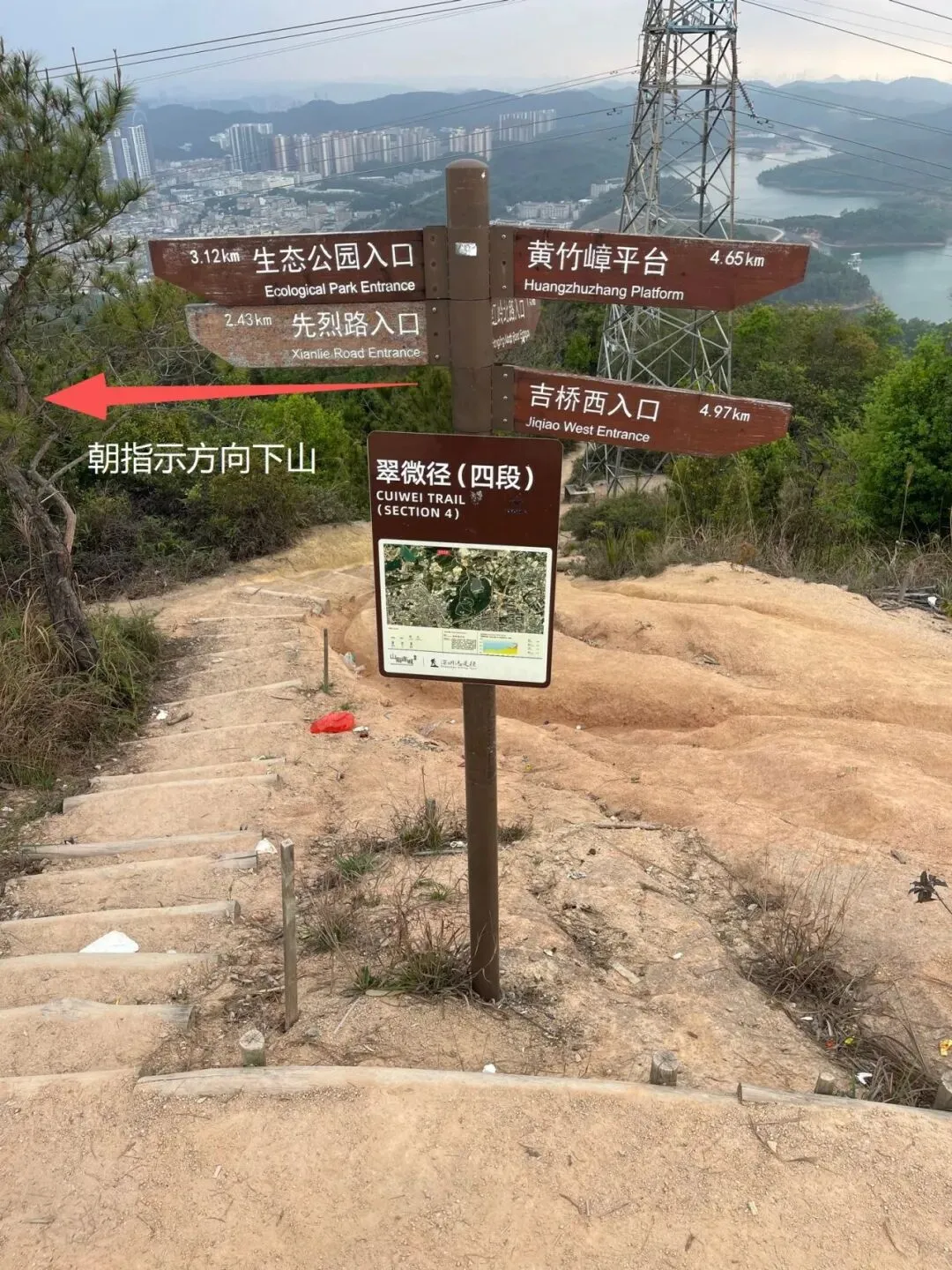 登顶红花顶是全程最有攀登情趣的一段。站在顶上,清林径水库在脚下铺开,远处的城市轮廓清晰可见——你会觉得,爬上来值了。