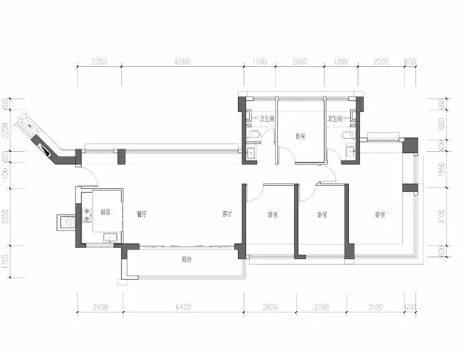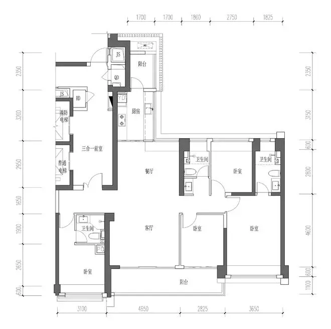 ,设计的是竖厅格局,客厅3.1米开间,LDKB一体化,S墙设计预留冰箱卡槽位,3个卧室分别做到了主卧10.2㎡/次卧8.55㎡/次卧7.95㎡(包含墙体飘窗),U型厨房,卫生间三段式分离,得房率约77%(不含赠送),西南朝向。