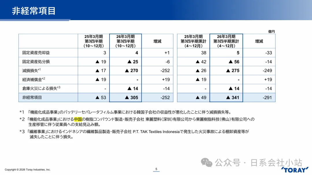 2月10日,日本东丽株式会社发布了最新一期的财报,财报当中有一组数据较为引人注目,因深圳工厂遭遇到附近居民疯狂投诉,不得不迁移到别处,从而产生了19亿日元的经济补偿金(工商信息显示24年参保人数为318人)。