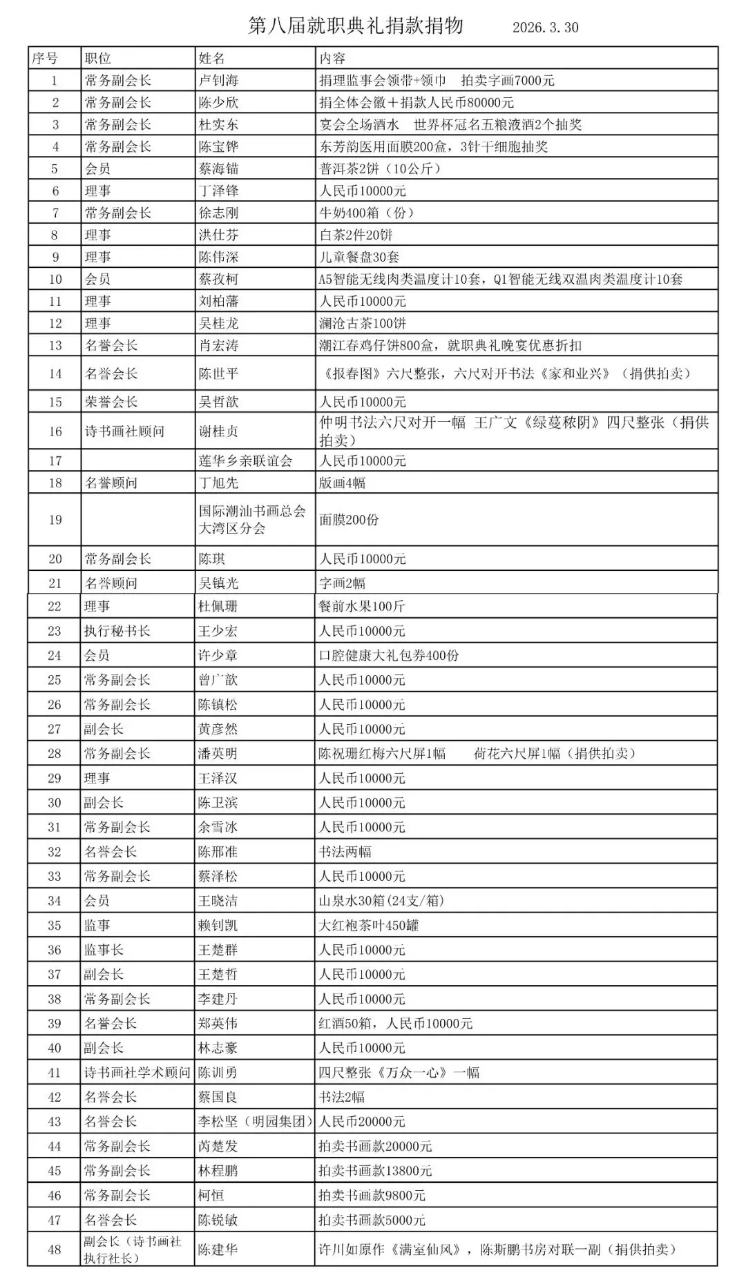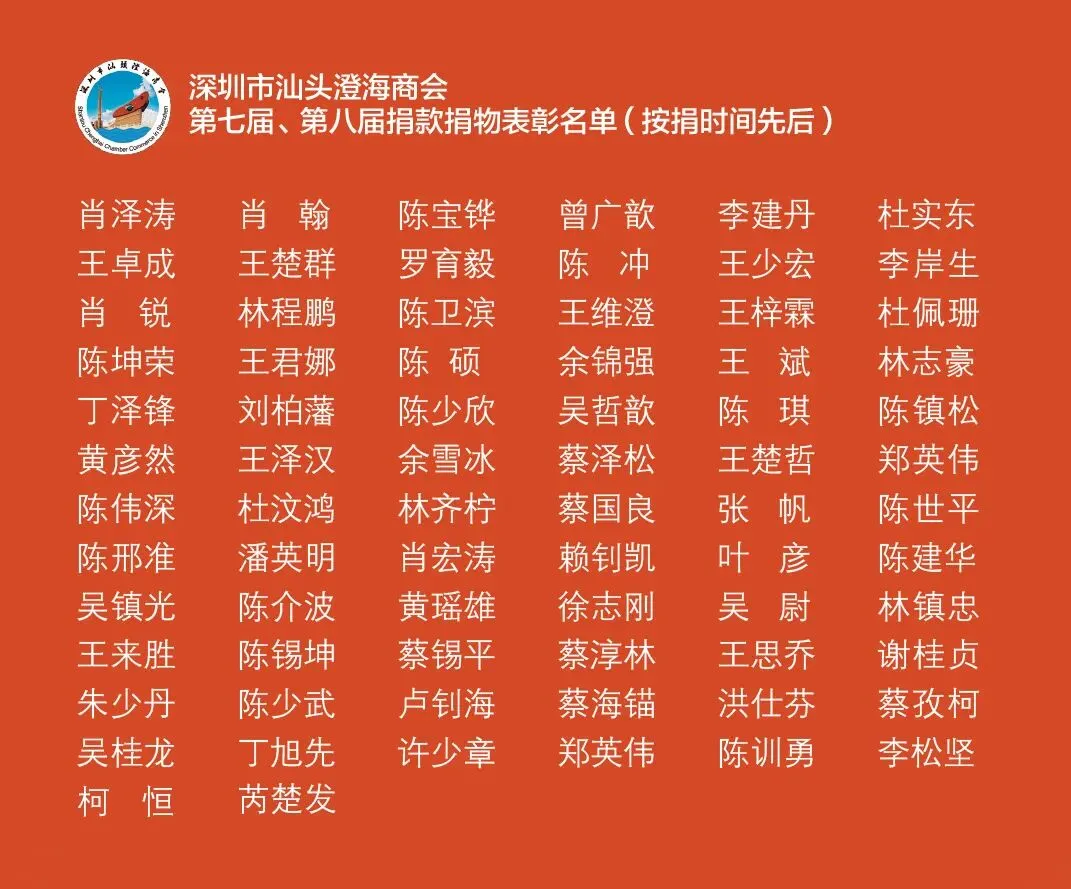 特别鸣谢:第八届理监事会就职典礼捐款捐物成员: