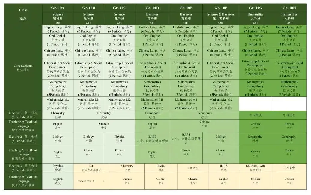 高中部:G10-G11(中国港澳台籍子弟及外籍学生)