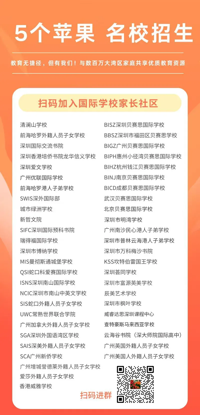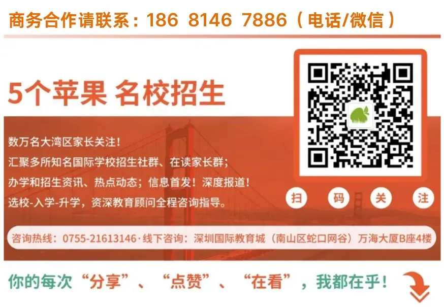 其实作为一所比较老牌的民办学校,南山中英文港籍班的爆火也是有迹可循。小果从去过南山中英文的家长口中得知,大家都对学校设施、配置都是赞不绝口。在强大的办学背景和雄厚师资的支持下,对比其他港系学校,南山中英文港籍班绝对是家长们超高性价比的首选!4月25日即将开考!想要入学家庭千万要抓紧时间备考,一次上岸!想要一站式了解国际学校详情、最新招生咨询、升学录取、开放日等前沿资讯,获取国际学校免费模拟入学测试、VIP访校等福利,可长按下方二维码,添加小助手进群交流!重磅线下活动预告