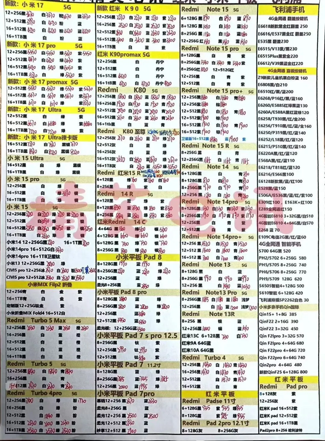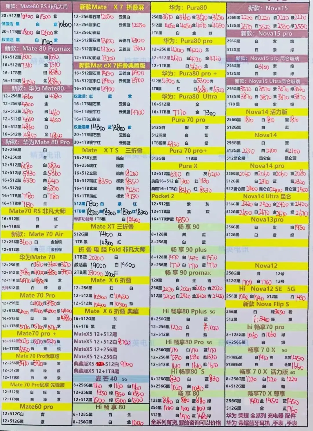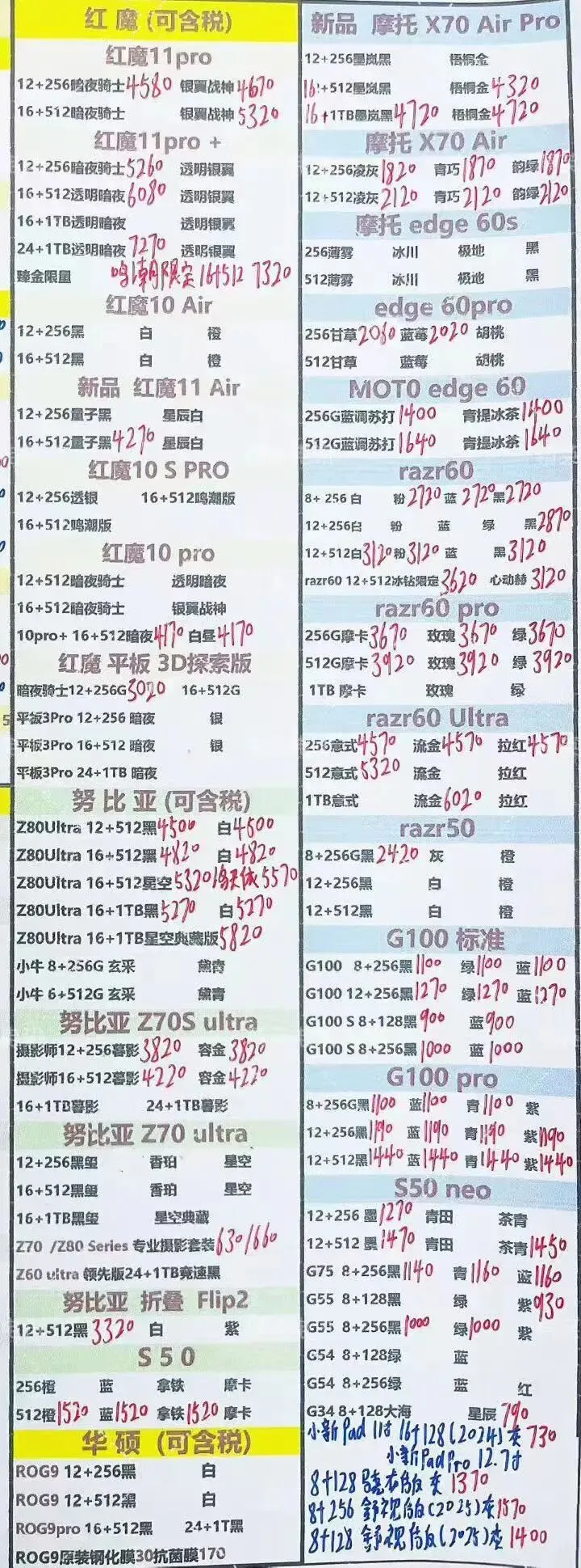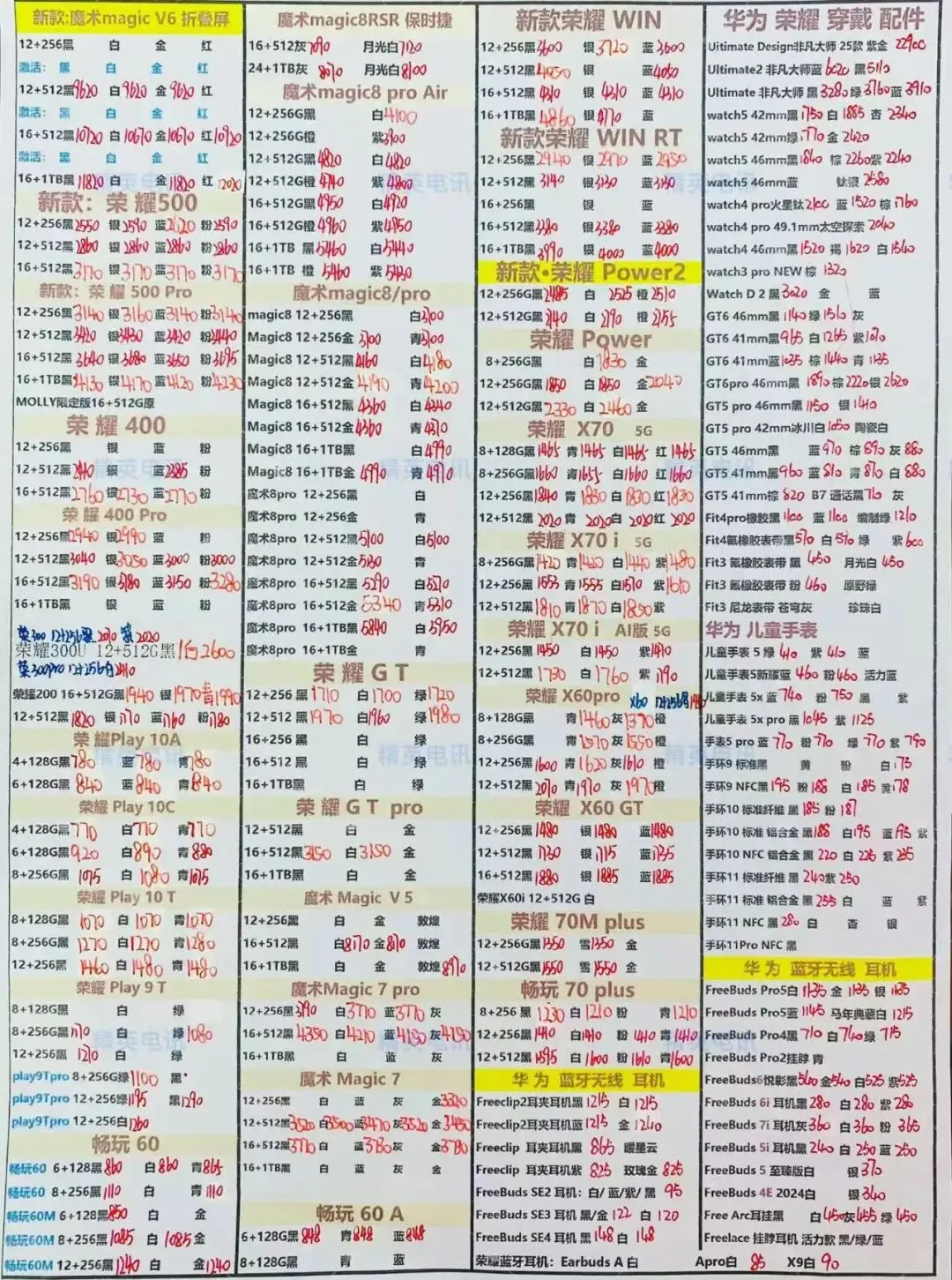 最新全新原封国行华为荣耀小米一加红魔等手机批发报价