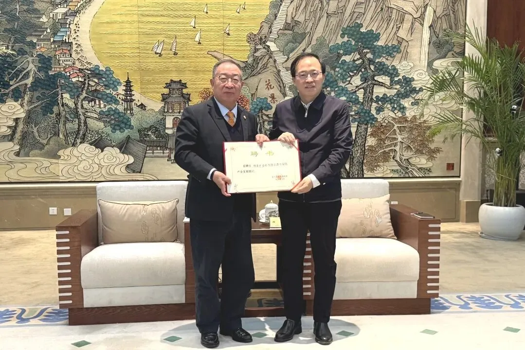 连云港市政府在会见现场正式聘请杨金才会长担任连云港市安全防范产业发展顾问,周进市长为其颁发聘书。