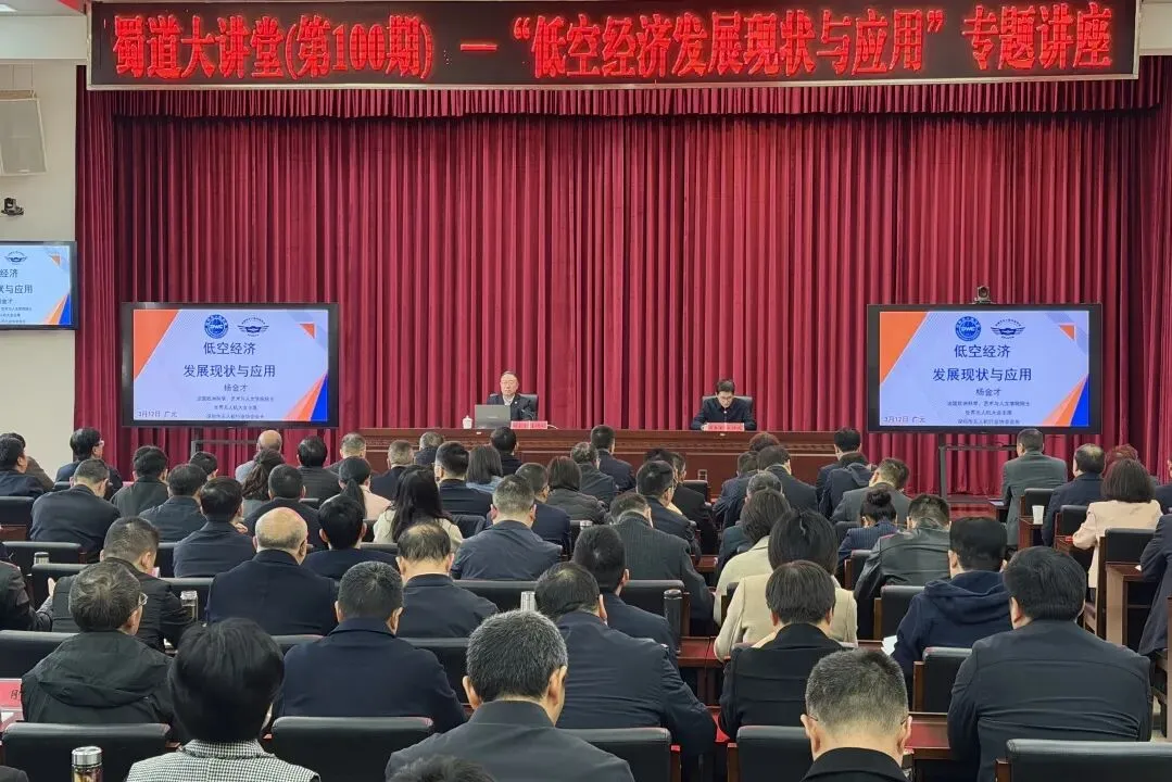 3月12日,蜀道大讲堂(第 100 期)“低空经济发展现状与应用” 专题讲座在四川广元举办,杨金才会长出席并发表主题演讲。