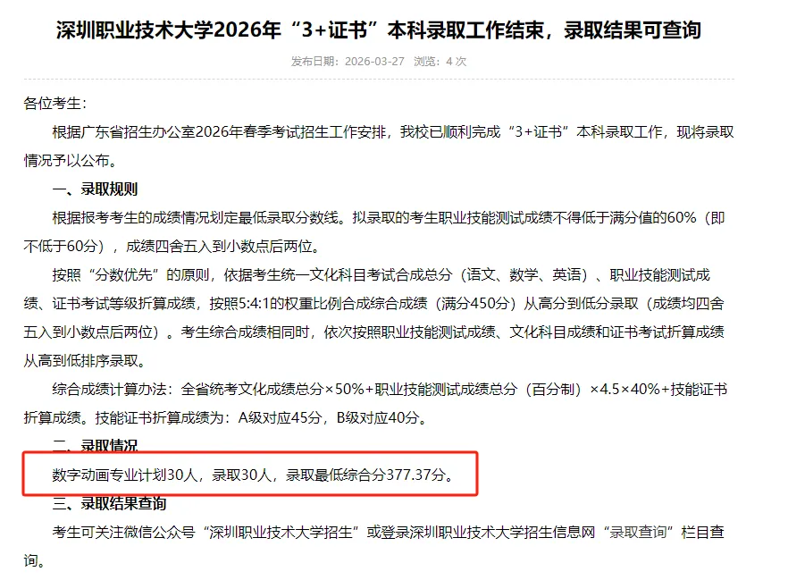 数字动画专业计划30人,录取30人
