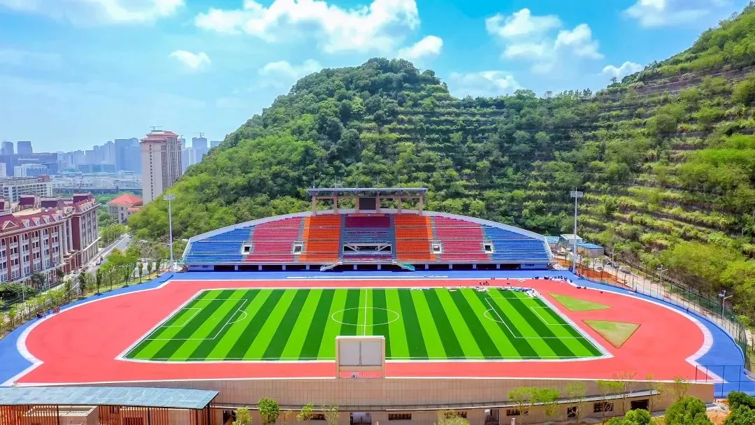 红色的跑道和绿茵场已经准备好