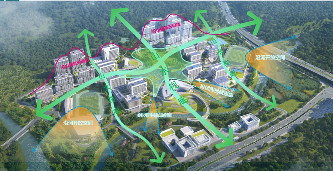 △融入自然山水的开放空间格局