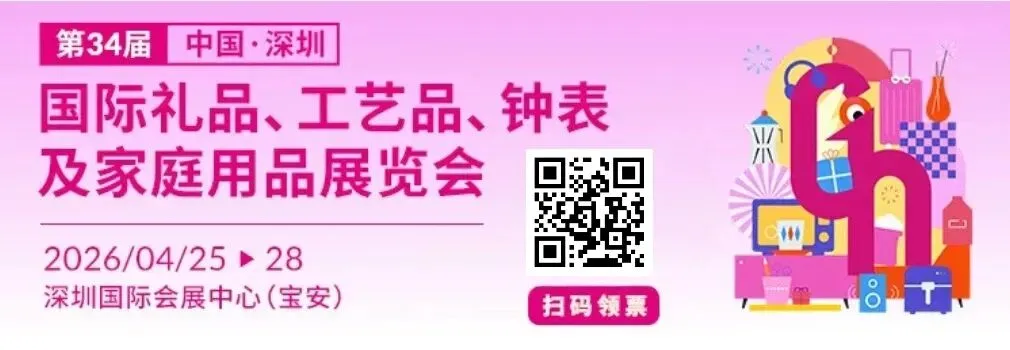 礼业人集合!每年必冲的深圳礼品展,终于要在4月拉开帷幕啦✨ 第34届中国(深圳)国际礼品、工艺品、钟表及家庭用品展览会,作为亚洲规模领先的礼品家居旗舰展,今年依旧诚意拉满——26万㎡超大面积、4500+全球优质展商、100万+款创意好物,从AI科技潮品到国潮文创,从商务礼赠到家居日用,一站式承包你全年的选品、采购需求。
