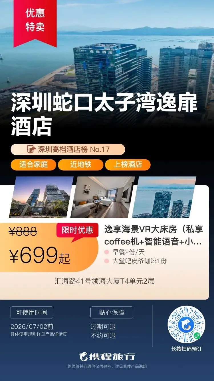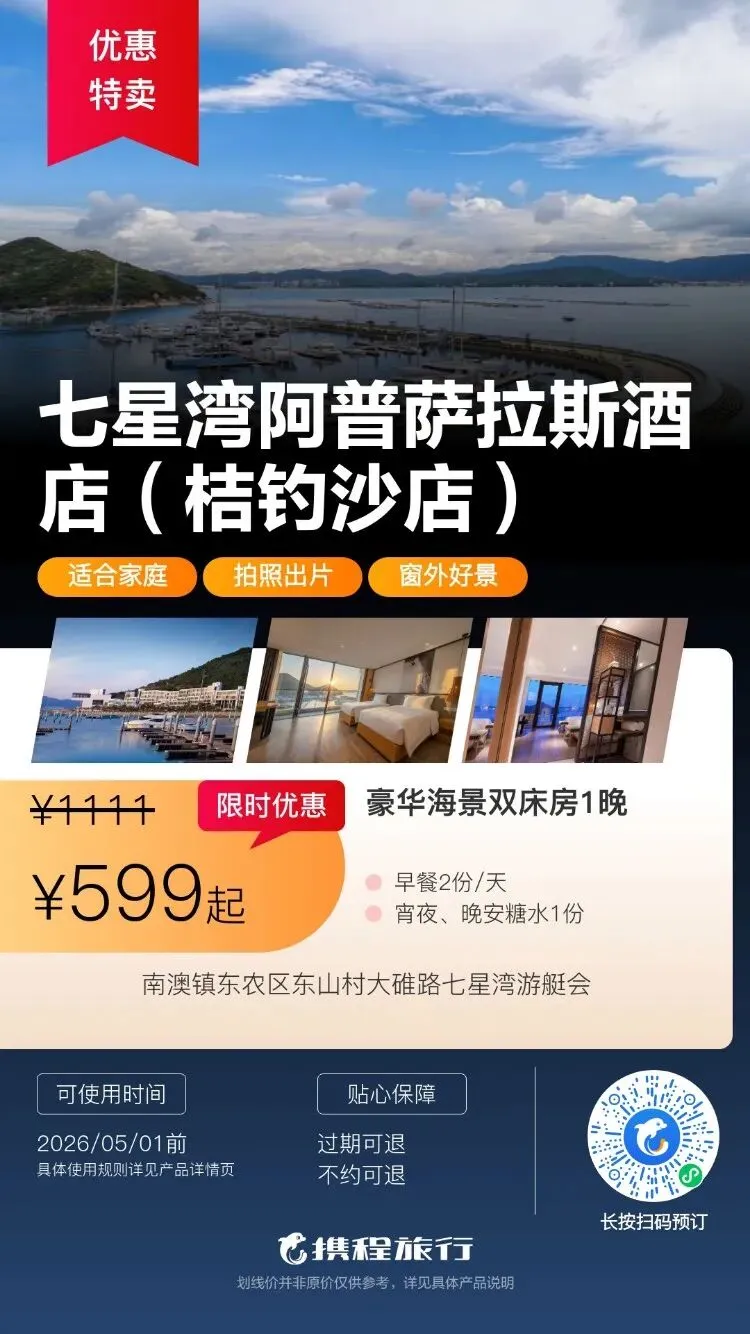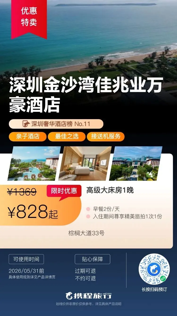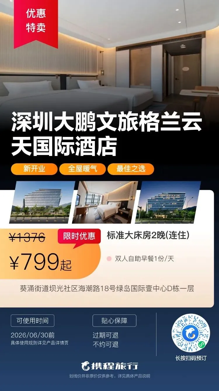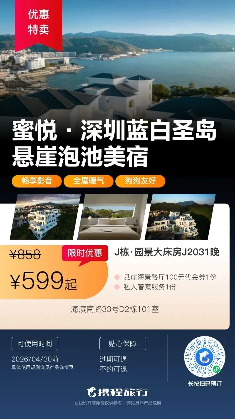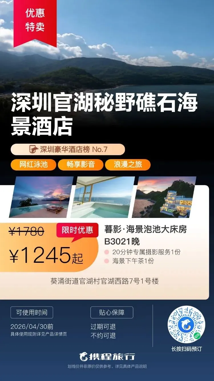【清明特惠】深圳大梅沙·中兴和泰海景酒店1晚度假+泳池、大梅沙沙滩