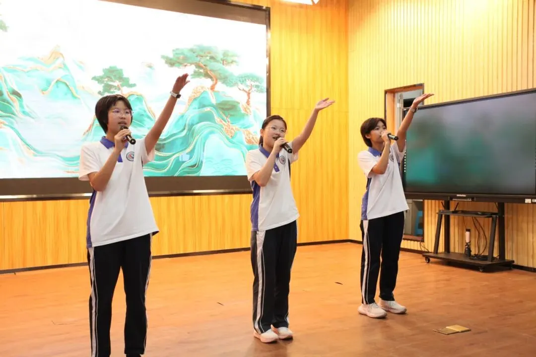 文艺表演环节精彩纷呈、暖意融融。青葵合唱团倾情演绎歌曲《人间共鸣》,悠扬的歌声传递出青春的朝气与温暖;校园十佳歌手代表——八(9)班冯慧馨、贾麒凤同学,七(11)班时汐雨同学登台献唱《立春》,清澈的嗓音、真挚的情感赢得了在场家长们的阵阵掌声,充分展现了葵涌中学学子的青春风貌与艺术素养。