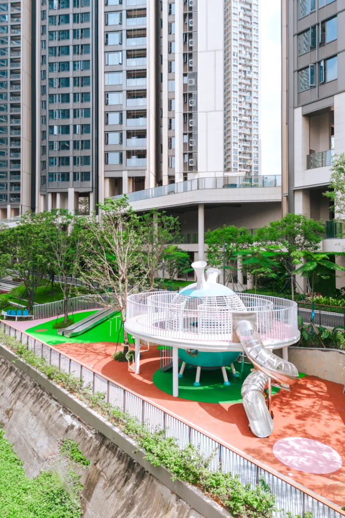 有约630㎡的儿童乐园,配备各种娱乐设施,补全孩子童年的成长回忆;