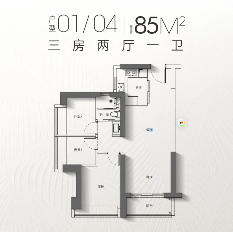 虽然面积段刚需,但却做出了超配三房的格局,户型方正,几乎没有面积浪费。
