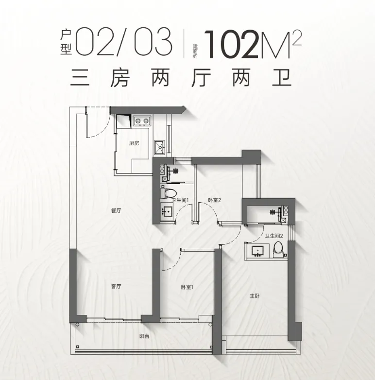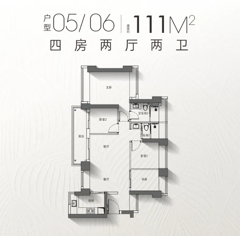 约5.6米的阔景阳台通连次卧,主卧套房更是南北通透,最大限度保障观景&采光,舒居性拉满!