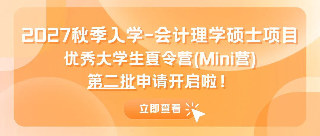 为给到更多优秀学子面试考评机会,会计理学硕士项目针对夏令营-Mini营的申请及审核将分为三个批次进行。 第一批申请已完结。第二批则是指2026年3月10日早9点至4月10日9点之间提交的申请。第三批考核将于4月上旬发布。
