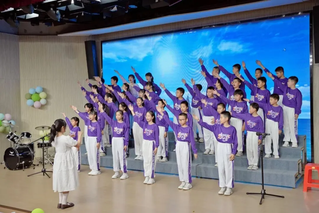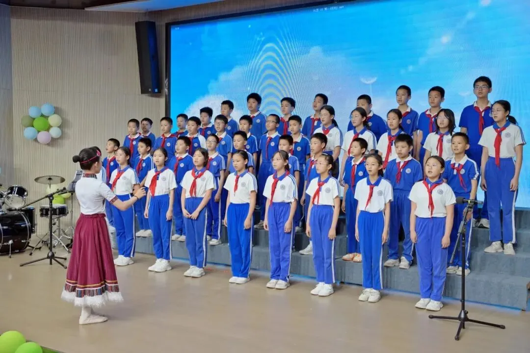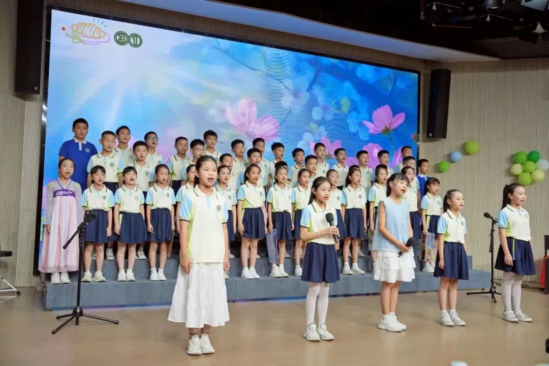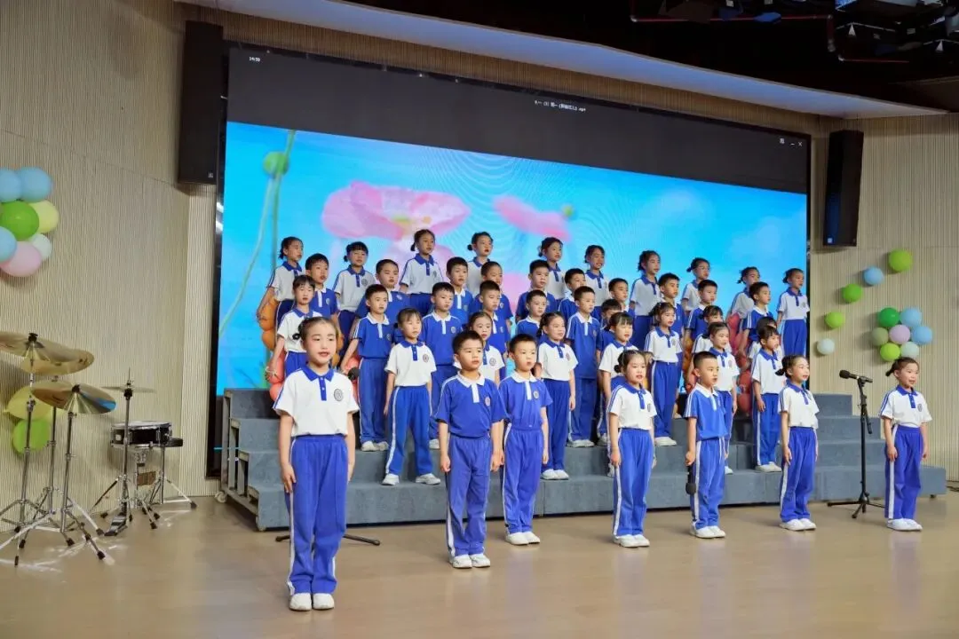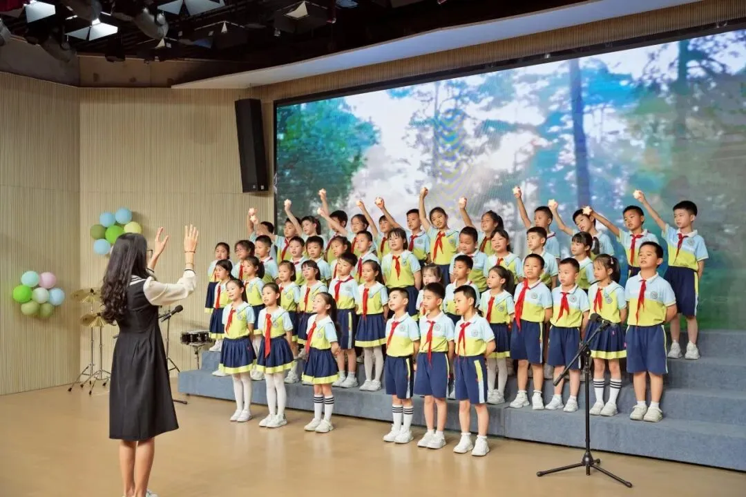 一、二年级的孩子们带着纯粹的童真登场,用稚嫩清澈的童声唱响美好。他们的歌声宛如天籁,纯粹又真挚,既有对祖国的赤诚热爱,也有对生活的美好向往,既有红色精神的传承,也有成长路上的快乐与勇气,每一个音符都藏着孩童的天真烂漫,每一次演唱都展现着同学们的灵动与可爱。