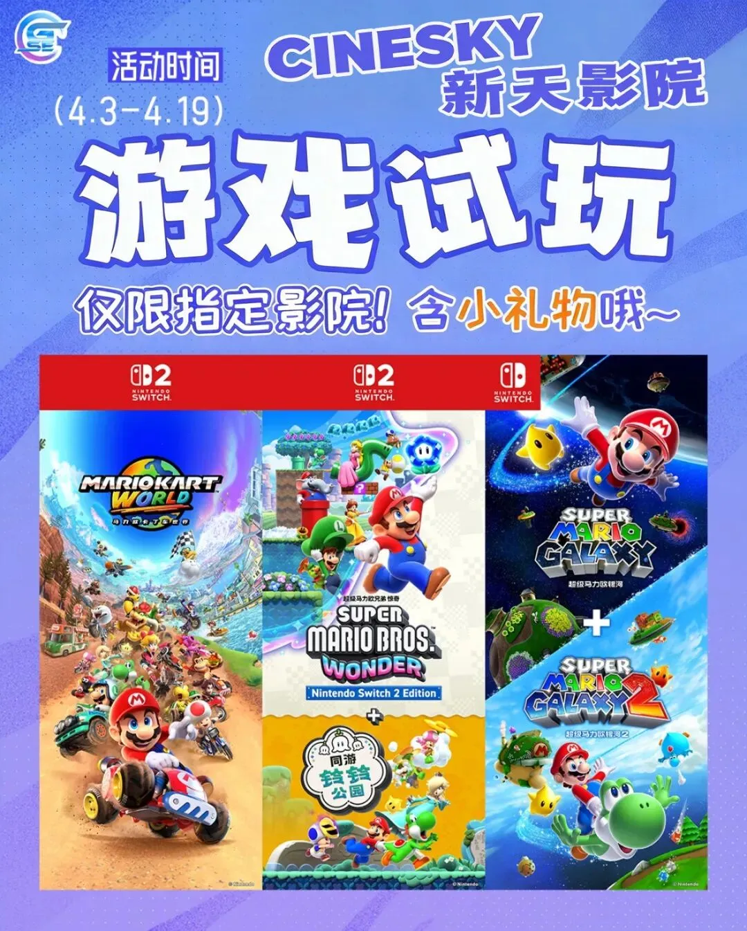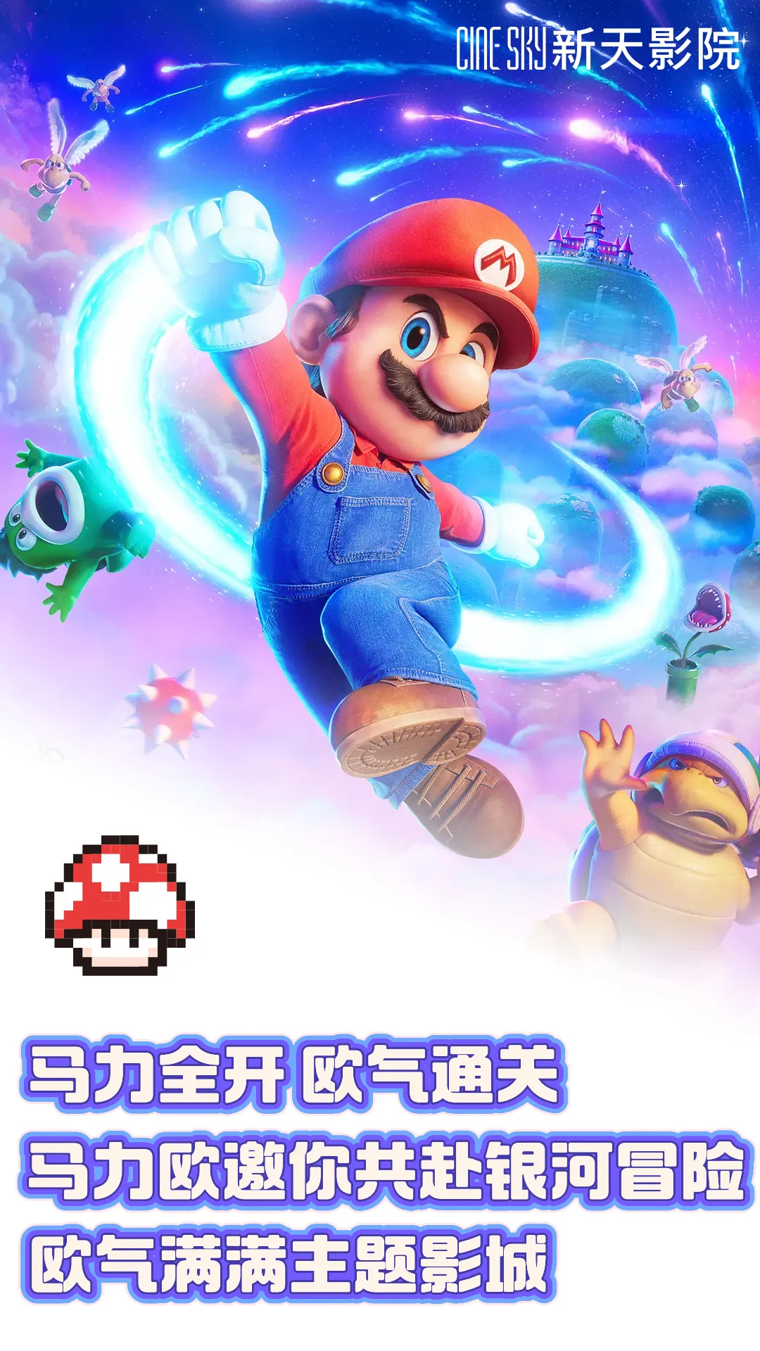 更有深圳独家任天堂官方合作试玩区重磅落地CINESKY新天影院(壹方天地店) ! A 区影院大堂特设专属游戏体验区,现场即可畅玩马力欧系列经典游戏。观影之余沉浸式感受经典 IP 魅力,在大银幕感受星际冒险,在影院大堂体验马力欧欢乐世界, 现场试玩还能免费领取限定精美文件袋,一站式解锁电影与游戏的双重快乐~
