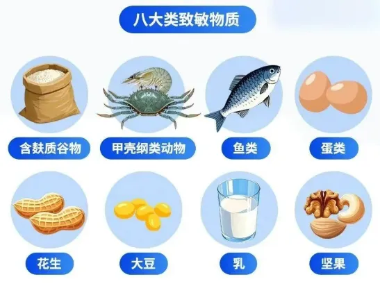 看过敏原:麸质、甲壳类、鱼、蛋、花生、大豆、乳、坚果……过敏星人一定要瞪大眼睛看!👀