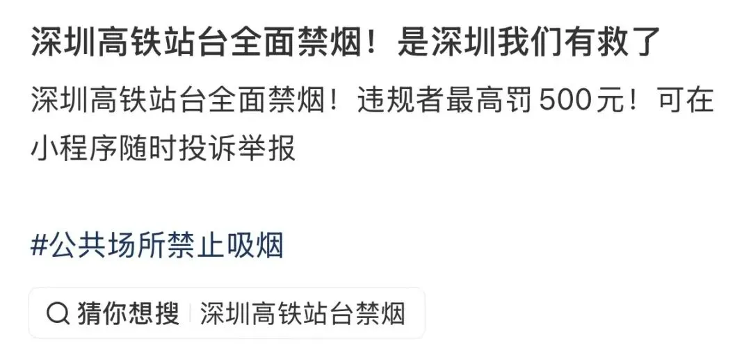 此前,深圳控烟部门已对多名在深圳北站、公交车站台等区域吸烟人员,作出了罚款处罚。