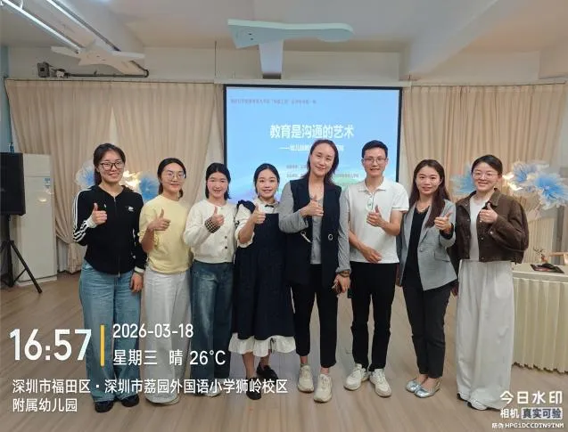 3月18日,我园9名4-6年教龄的骨干教师来到深圳市福田区荔园外国语小学附属幼儿园,学习家园沟通的艺术与技巧。