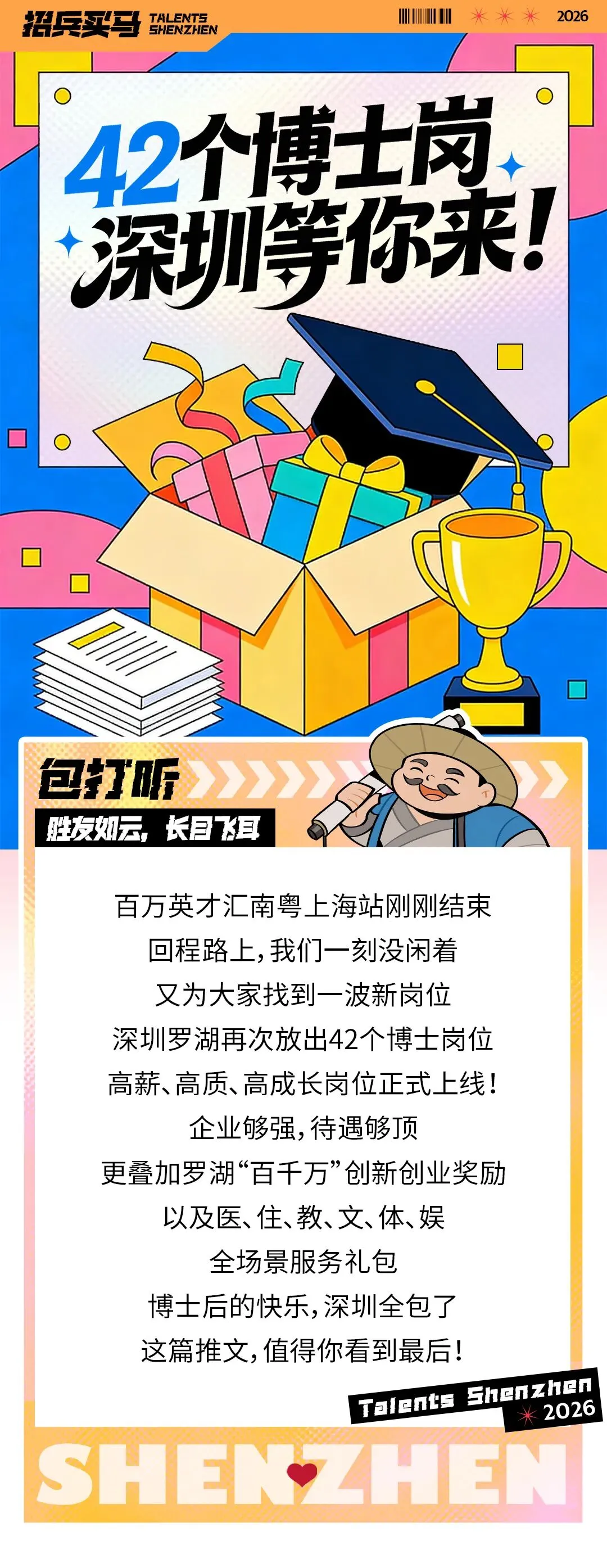 如果你也有博士招聘需求,或者有合适的岗位资源,别藏着掖着啦!博士岗位推荐通道火热开放中!扫描下方二维码,填写博士岗位需求信息表,享“罗湖引才礼遇”、统一宣传和精准对接一条龙服务!