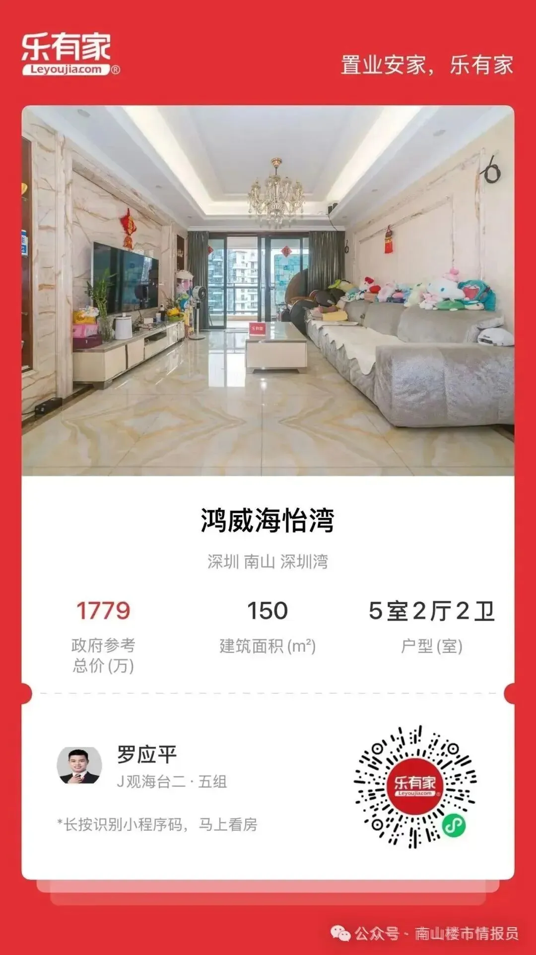 性价比:这是南深圳湾富人区,鸿威海怡湾,非常不错的一套改善大五房,小高层的凤凰层,还能看一点海景,业主诚心出售,改善必看好房。
