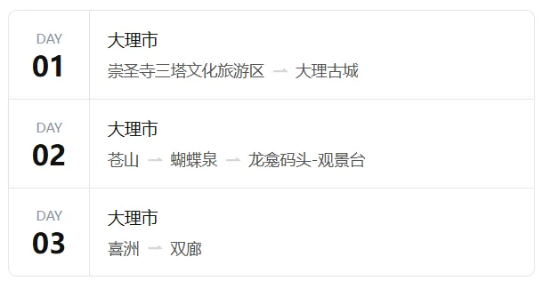 清明假期深圳出发去大理游玩,这份旅游攻略很值得参考:精选大理核心自然与人文景点,兼顾节奏舒缓,适合朋友结伴深度体验大理风花雪月。线路概览