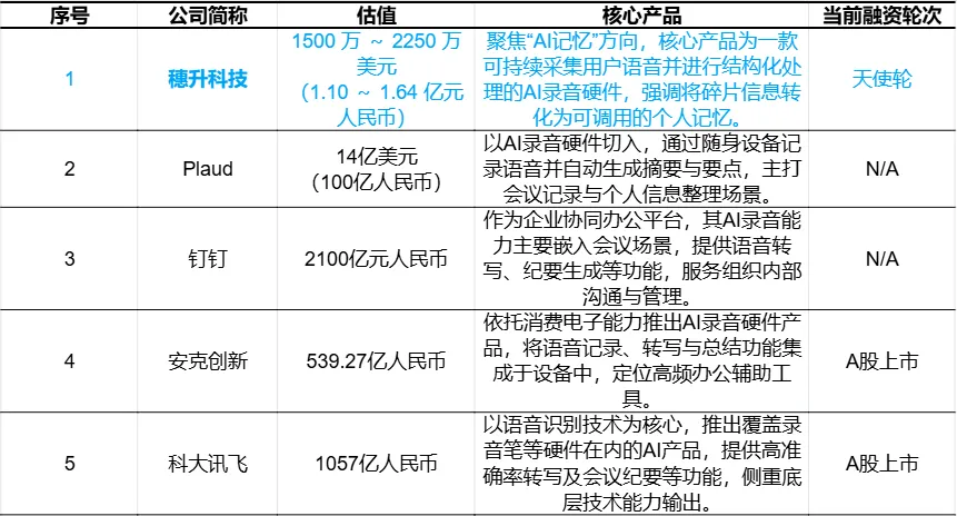 以便携 AI 硬件为入口,多模态信息采集化作个人记忆库;仅 121天 完成天使轮,估值达 1500万-2250万美元;由 红杉中国 领投,安克联合创始人 高韬 跟投,高鹄资本 担任财务顾问;创始人 王时远 为前 安克全球CMO;所在行业 CAGR约17.1%。