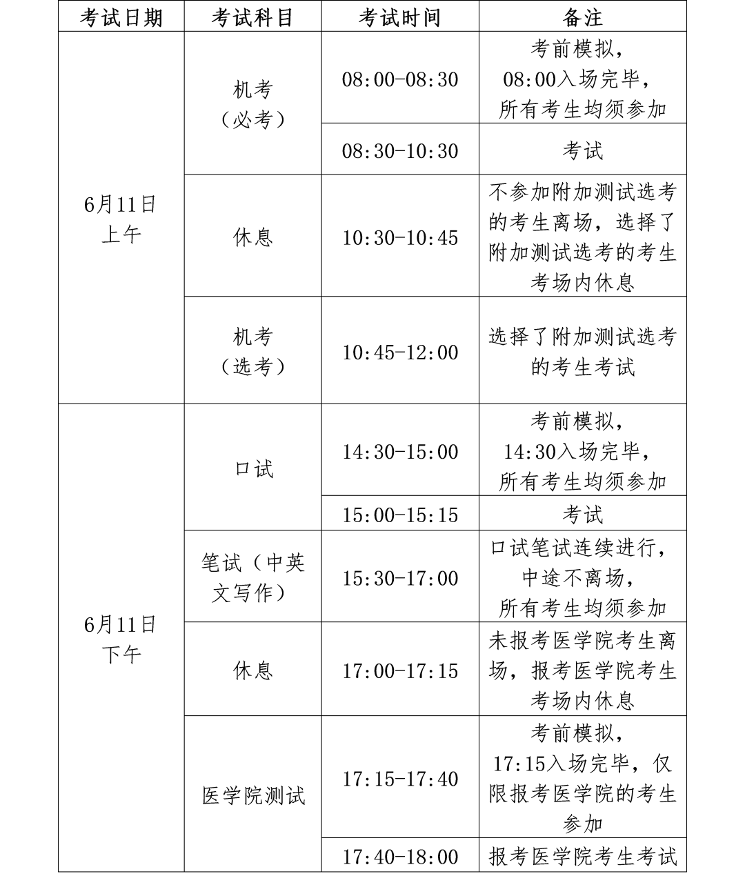 三、测试方式:包括初试、复试。为了减少疫情防控下考生交通往返,考生须于6月11日全天参加考试,其中,只有初试成绩达到复试入围线的考生,复试成绩才被计分并纳入总成绩。