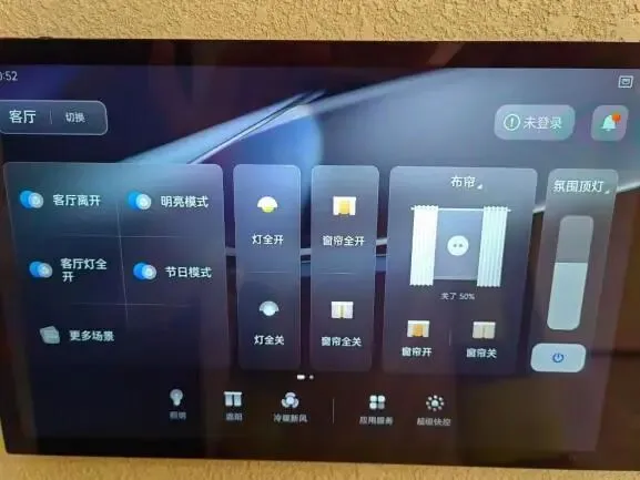 全面配置全屋智能中控屏,中控网关支持多品牌互联、本地场景联动、断网本地控制、远程OTA升级,并具备墙面主机、智能面板等多种形态。