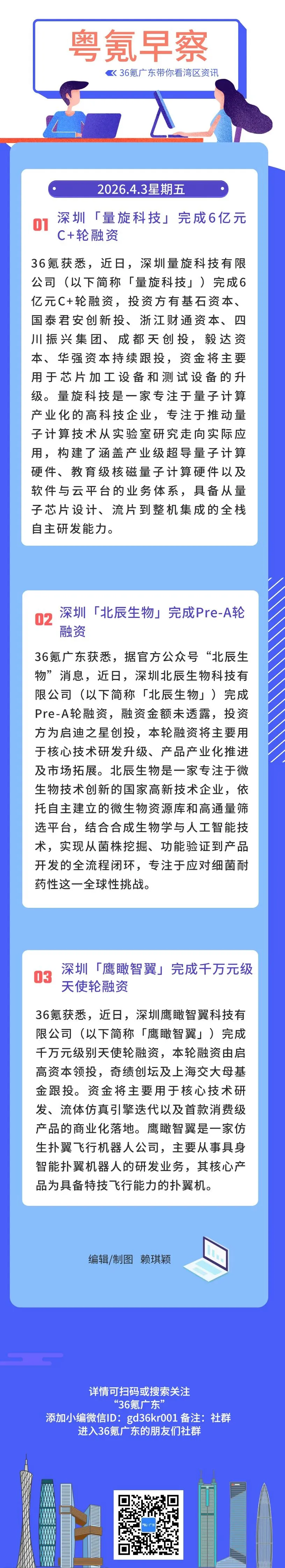 >粤氪早察 | 深圳「量旋科技」完成6亿元C+轮融资