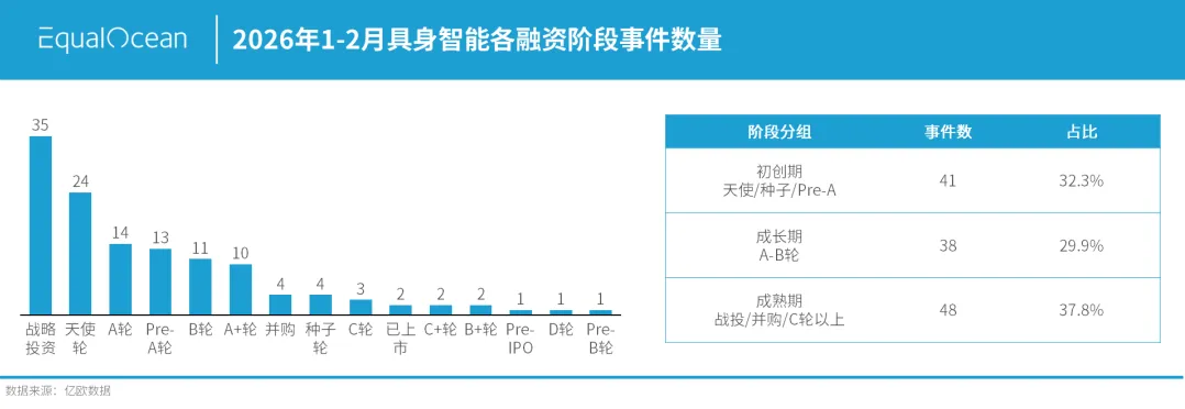 据EqualOcean不完全统计,1-2月期间,具身智能领域共发生127次融资事件,涉及120家企业,吸引310家投资机构参与。从深圳到北京,从人形本体到AI大脑,从早期试探到批量订单,具身智能正在经历一场从技术突破到商业化落地的关键跃迁。