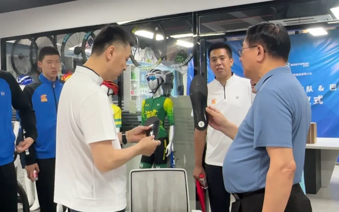 在正式签约前的交流环节,许新居董事长亲自带队,围绕巴迪瑞的品牌发展历程与总部各板块的研发实力向俱乐部代表进行了深入讲解。队员们也现场体验了多款前沿运动黑科技产品,在互动中进一步感受品牌所倡导的创新理念。