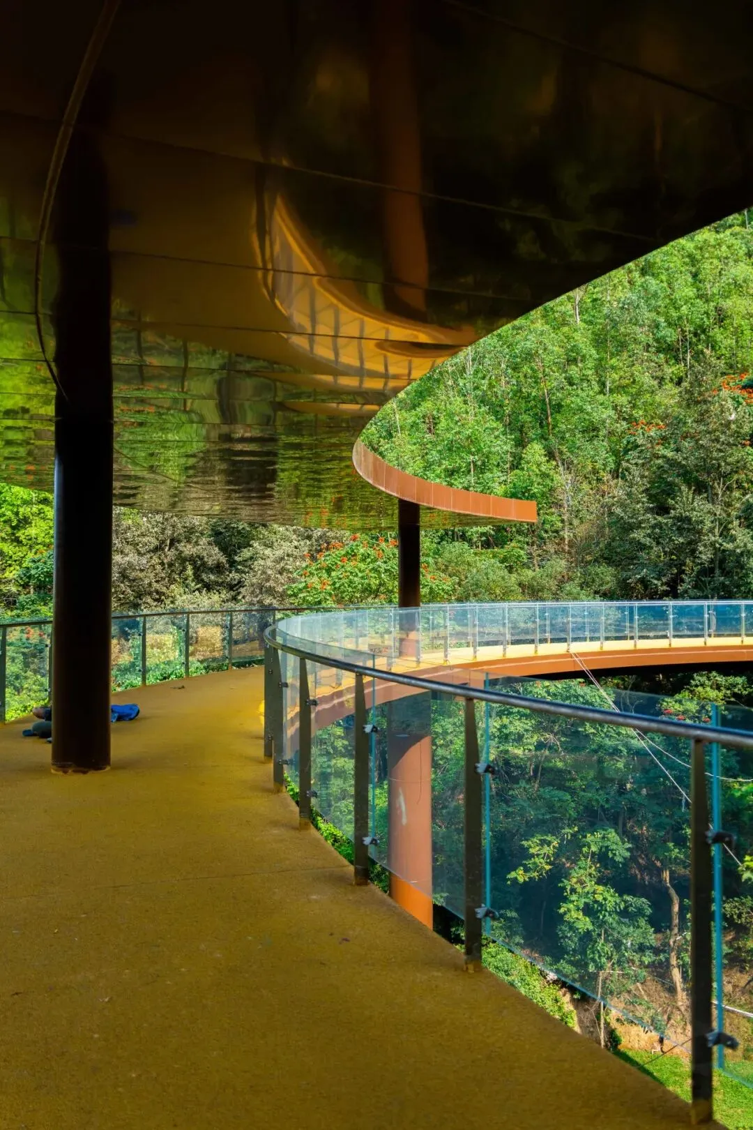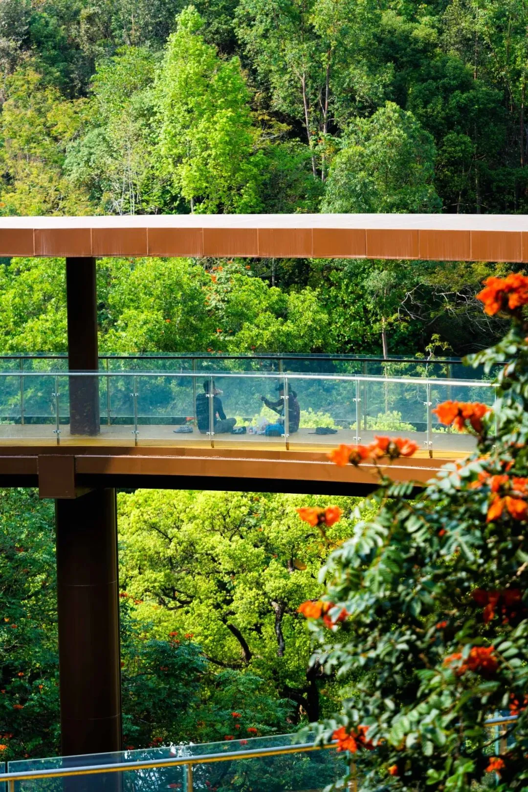 长廊穿梭在密林之间的长廊,宛若一条镶嵌在翠绿山谷中的丝带,流畅的线条搭配清新的配色,仿佛自然天成,漫步其中,感受山野的静谧,心情也变得畅快起来。